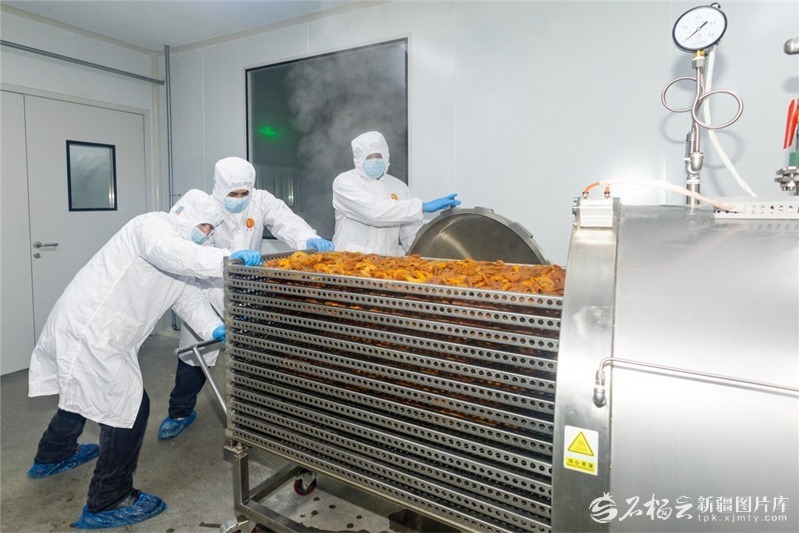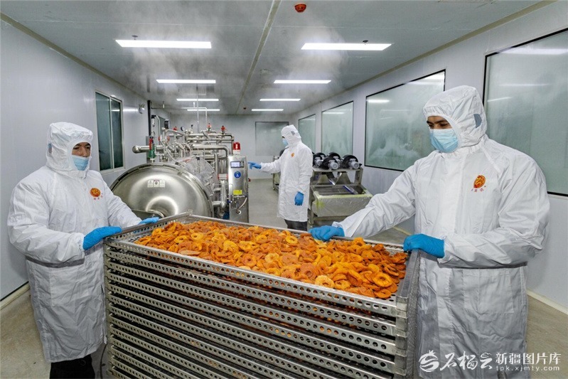 该公司是上海市首批产业援疆落户企业,已建成干果、冻干、坚果炒货等深加工生产线,形成“公司+基地+农户+市场”的全产业链模式,通过订单式收购带动当地种植户增收。□张昀摄