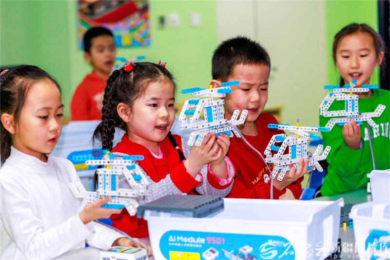1月11日,许多小朋友来到乌鲁木齐市青少年宫学习滑冰、绘画、舞蹈、计算机编程等,丰富课外文化生活。图为小朋友在绘画。孙振嵩摄