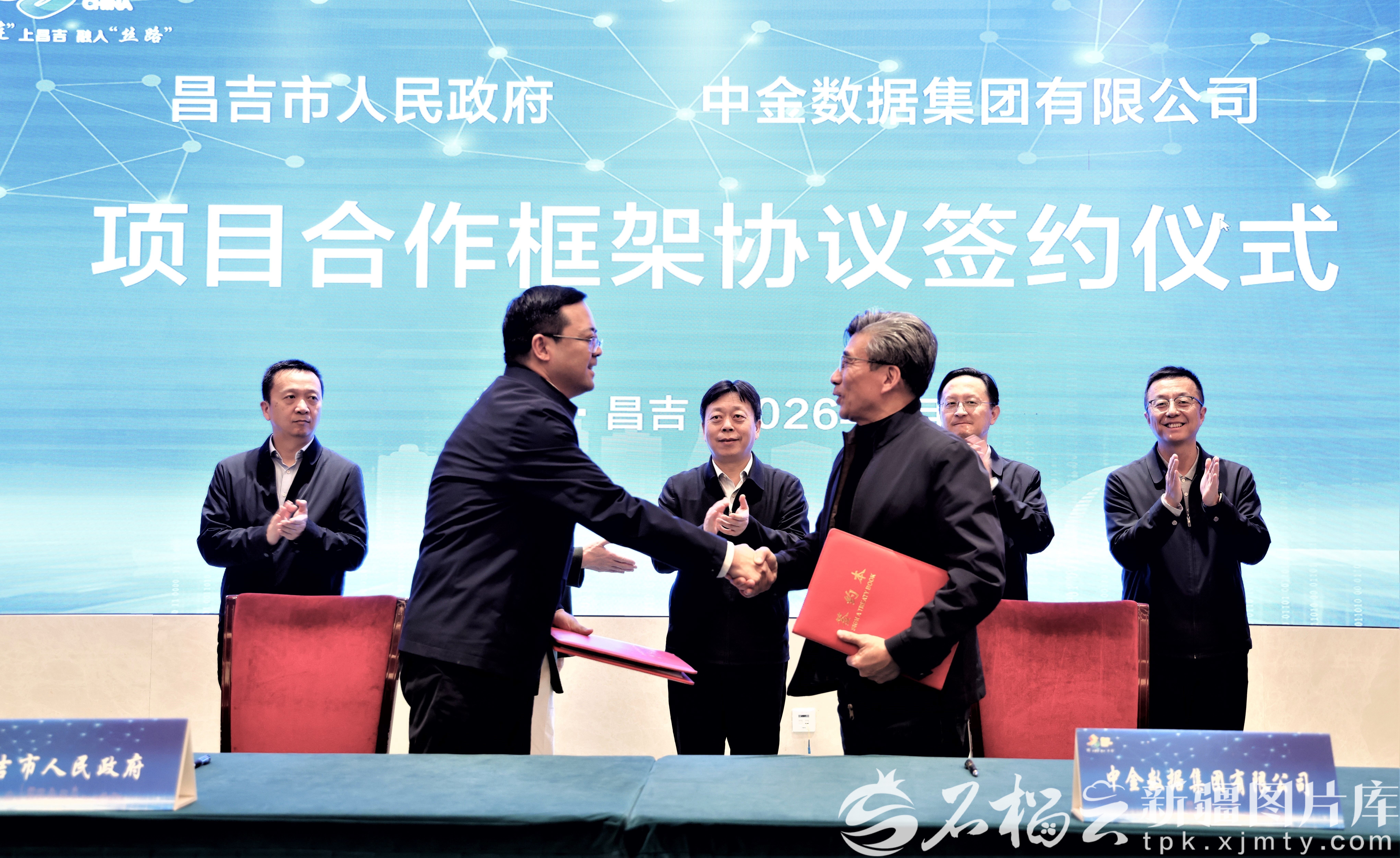 1月16日,昌吉市人民政府与中金数据集团有限公司签署建设中金数据新疆零碳算力集群项目协议,图为签约仪式现场。梁宏涛摄