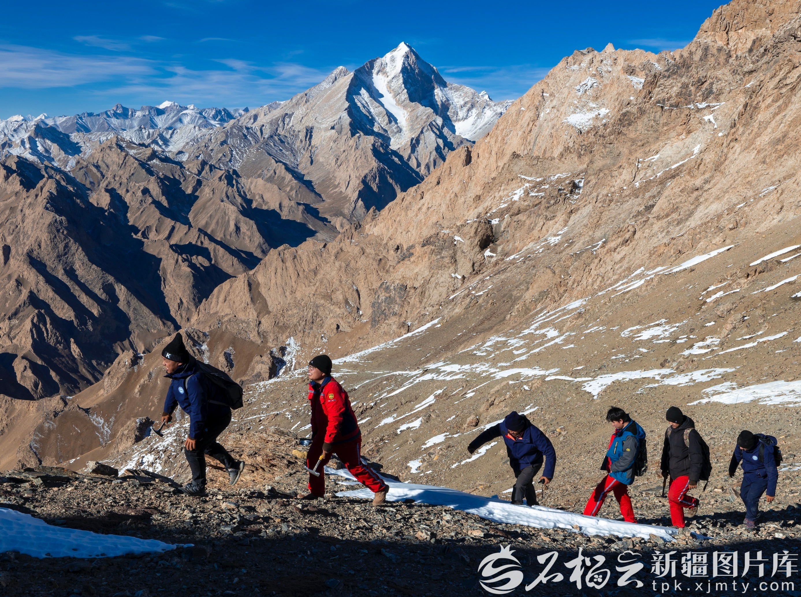 2025年11月24日,自治区地质局阿克苏地质大队工作人员坚守拜城黑英山一线,在严寒中展开霞石正长岩普查工作。马当福 摄