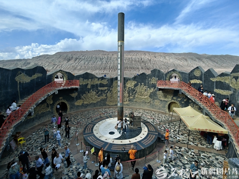 “金箍棒”造型的巨型温度计是火焰山景区网红打卡点(资料图)。
