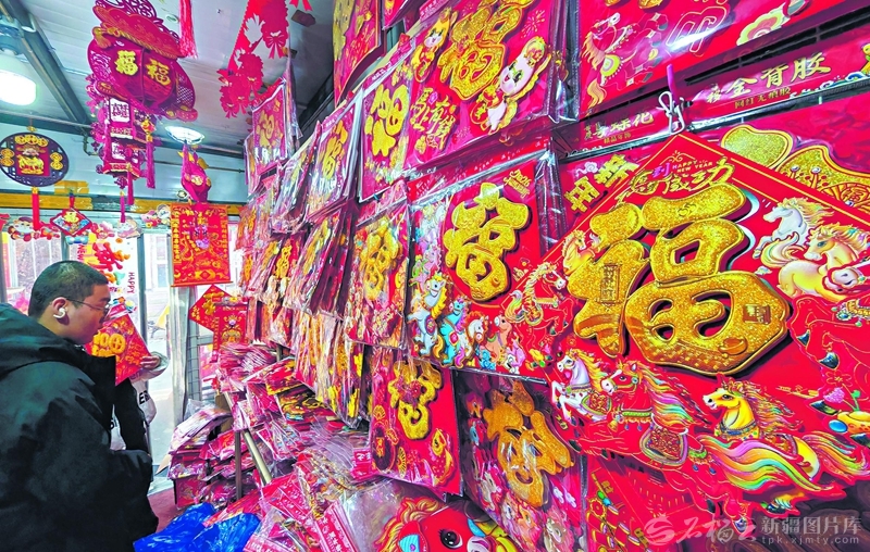 2月1日,顾客在新疆国际商贸城挑选福字。新春佳节临近,乌鲁木齐市处处洋溢着浓浓的年味。天山网-新疆日报记者蔡增乐摄