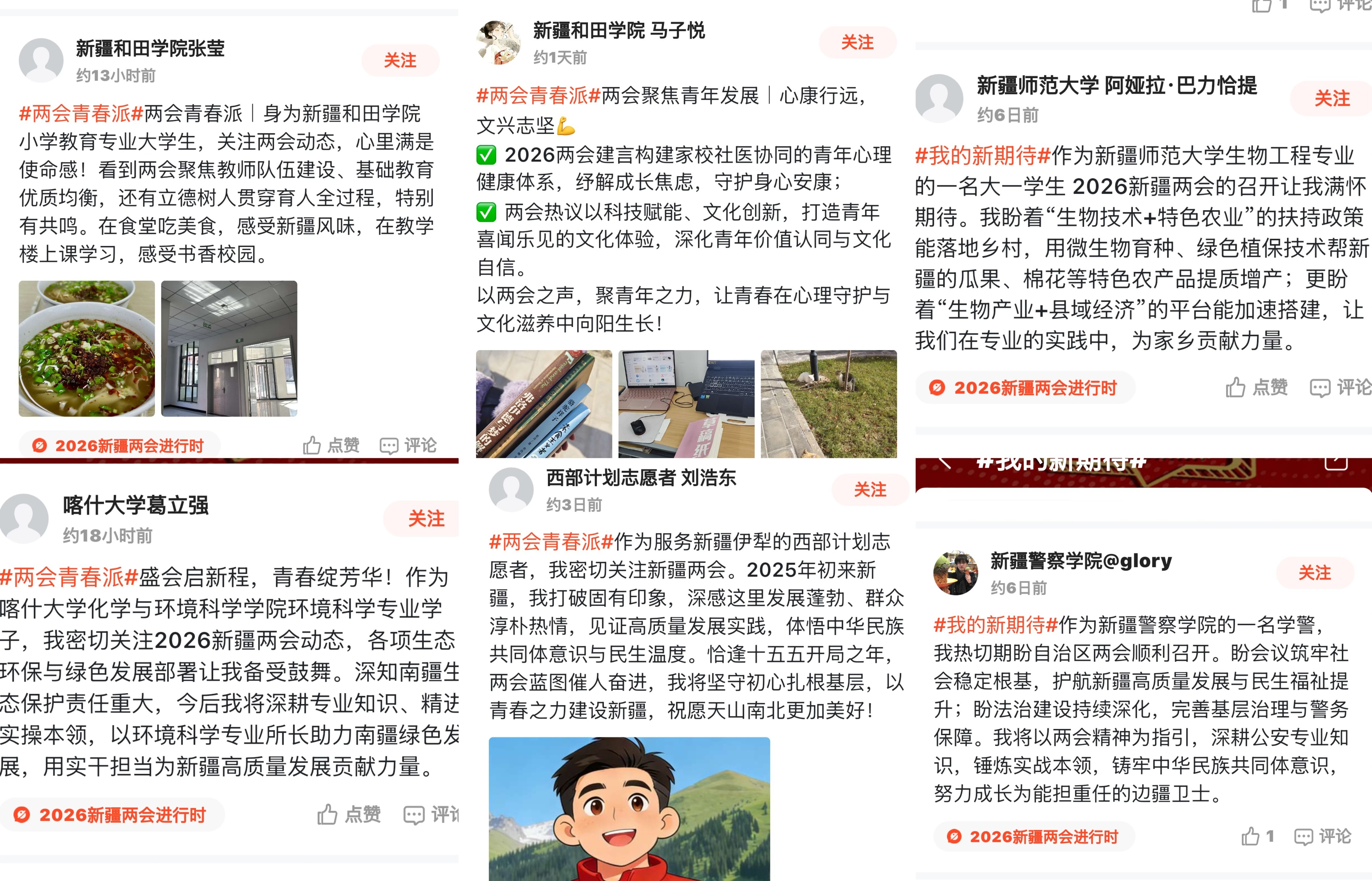 青年不仅是未来,更是时代的参与者和建言者。在2026年自治区两会召开期间,为助力青年朋友们牢牢把握时代机遇、融入新疆发展大局,1月24日,石榴云客户端联合自治区团委、石榴云新疆高校新媒体工作室(联盟),推出“两会青春派”2026年自治区两会石榴圈话题征集活动。截至2月2日,已累计有千余位高校师生参与话题讨论,他们围绕新疆发展各抒己见,展现出新时代青年的担当与智慧。