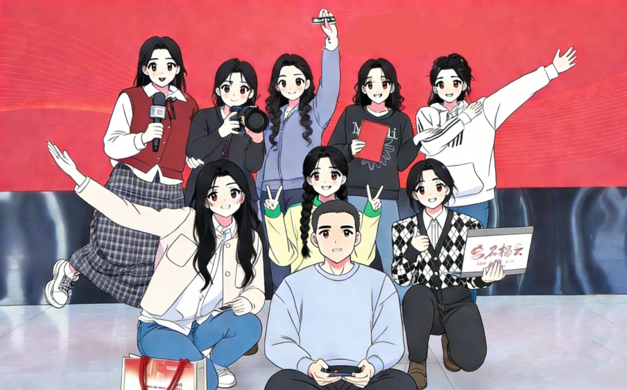 1月22日,来自东北大学、新疆大学、中国石油大学(北京)克拉玛依校区等院校的9位实习生在新疆日报社合影。图由AI处理