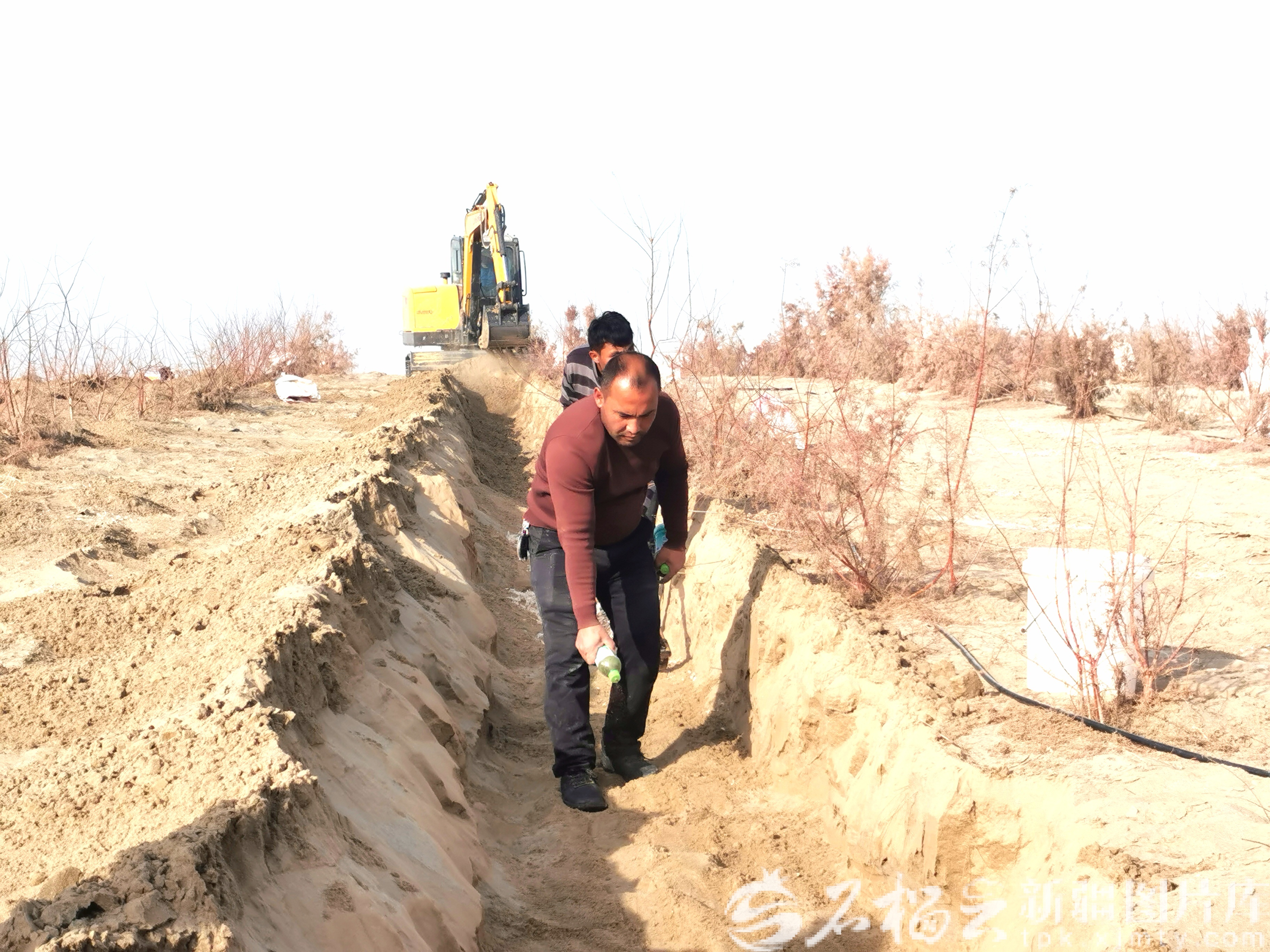 和田县英艾日克乡防风治沙点,种植户正在开沟播撒肉苁蓉种子(资料图片)。天山网-新疆日报记者 曹华摄
