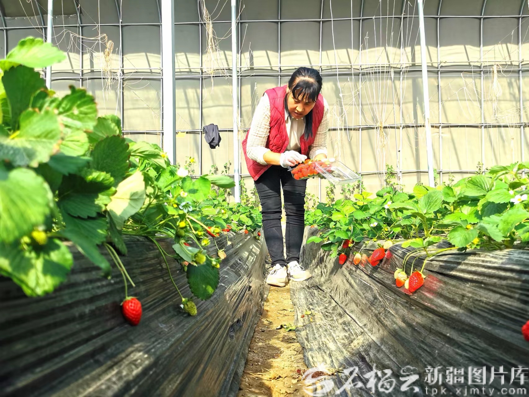 和田县盛世华强农业科技有限公司温室大棚内,工作人员在采收草莓(资料图片)。天山网-新疆日报记者 曹华摄