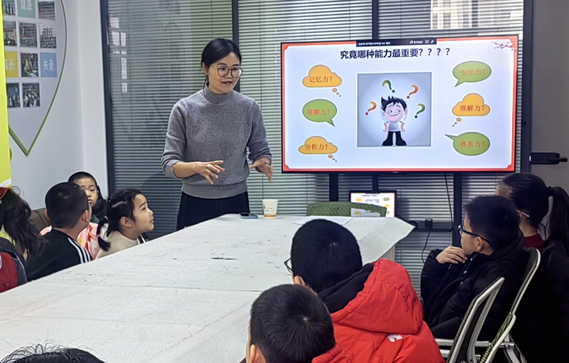 趣味游戏活动现场,“心流探险家”专注力提升环节率先登场。在“石榴花”家庭教育指导服务中心安静老师的带领下,孩子们通过“节奏模仿大师”“水果切切切”等趣味游戏,跟随视频完成律动与动作模仿,在轻松的互动中激活感官、调动注意力。随后,老师带领大家认识专注力的重要性,讲解其核心特点,并通过“舒尔特方格”(初级、中级、高级)等专业训练,帮助孩子们提升视觉、听觉、持续性与选择性注意力,增强抗干扰能力与任务切换灵活性,在沉浸式体验中感受“心流”状态,建立“专注很有趣”的积极心理联结。