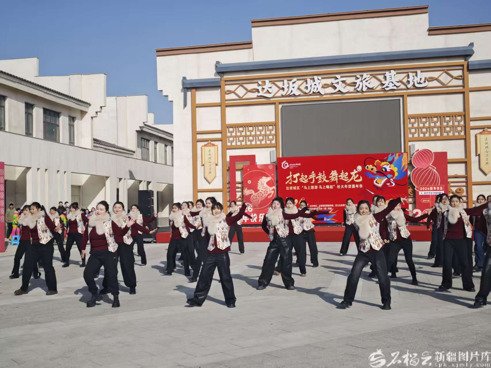 达坂城文旅基地,“达坂城的姑娘社火表演队”进行社火表演活动。石榴云/新疆日报记者宋海波摄
