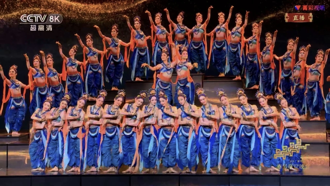 “《丝路古韵》是一部震撼且新颖的舞蹈作品,精良的制作,动人的舞姿,厚重的历史内涵,创造出春晚歌舞节目的新经典。”新疆龟兹研究院文博研究馆员张光民说,龟兹壁画历经千年,虽已斑驳,但仍有震撼人心的魅力。作品充分尊重龟兹石窟的文化特色,以蓝色为主色调,展现出舞者的端庄华丽,烘托了石窟壁画神圣且神秘的氛围,塑造了天空的浩淼深邃,与春晚喜庆宏大的主题完美契合,并通过严谨考证与创意编排,让静止的壁画在当代舞台继续震撼人心,充实了大众的审美意趣。