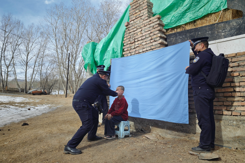 来到阿依沙·阿依达尔家,民警发现一家人正给马匹钉马蹄,为3月的刁羊比赛做准备,玉苏甫阿力担心马匹受惊伤人,全程守护。得知家里12岁的孩子齐尼古丽·阿依沙身份证丢失,民警立即搭建临时人像采集点完成拍照,并承诺几日后送证上门。“谢谢警察叔叔,你们留下吃顿饭再走吧!”临走前,孩子依依不舍。