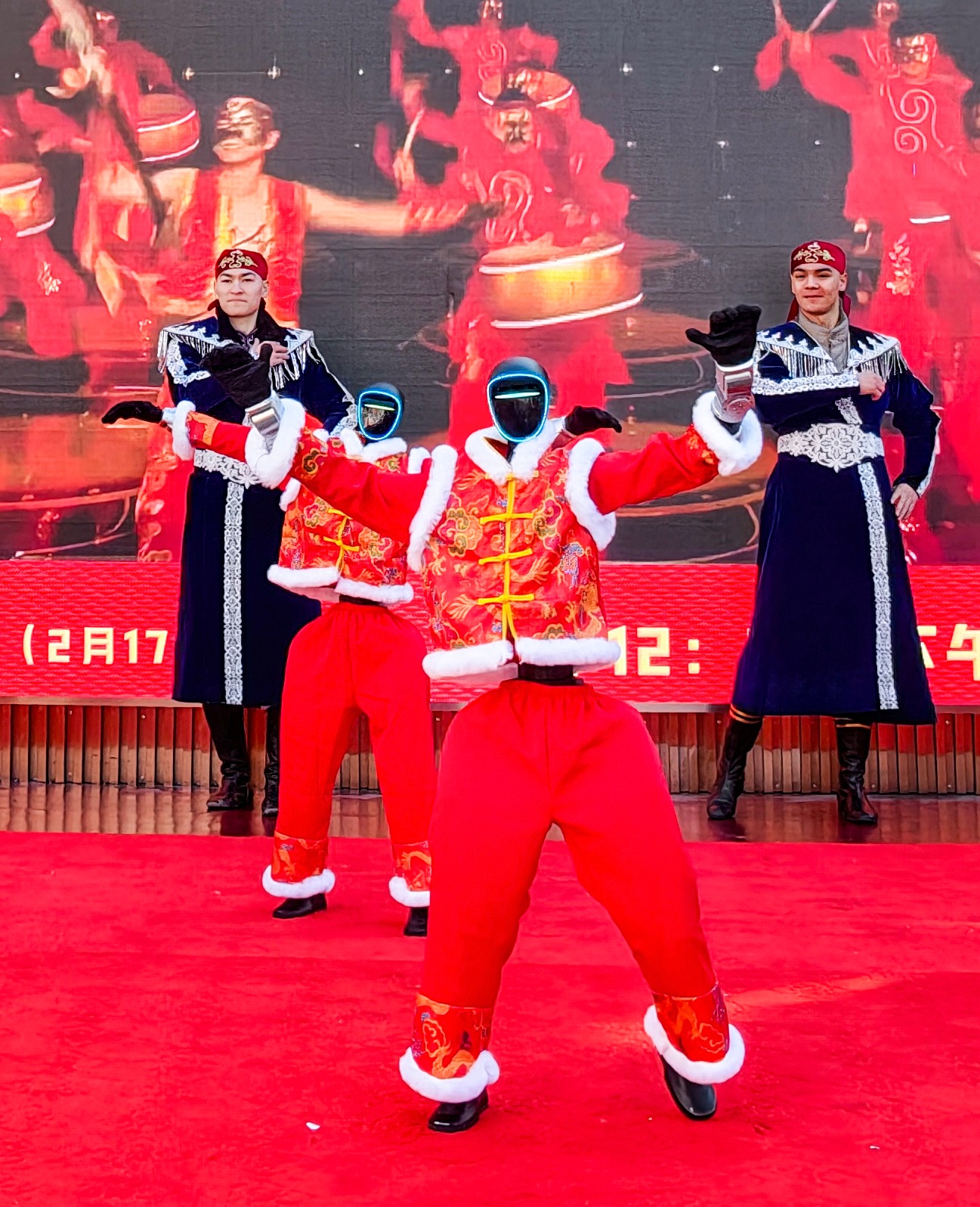 2月17日,新疆国际大巴扎景区张灯结彩、人头攒动,群众与游客在热闹喜庆的氛围中共度新春佳节。图为机器人表演舞蹈。天山网-新疆日报记者周鹏摄