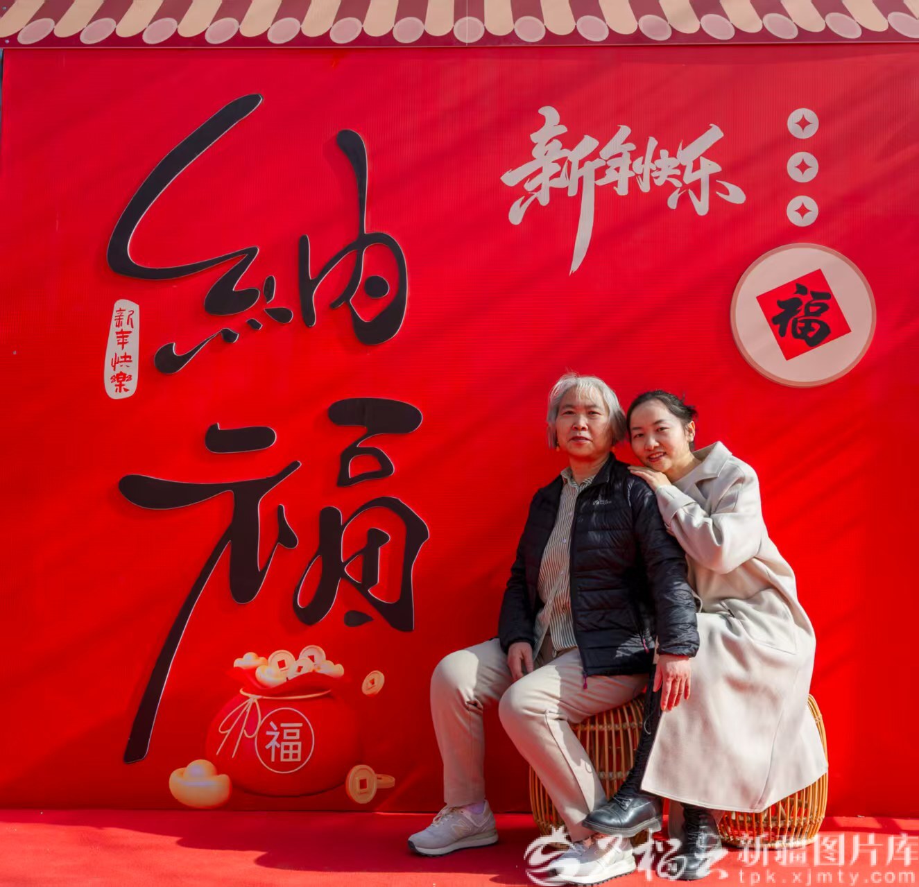 母女俩在庙会上合影留念(2月19日摄)。库尔勒市摄影家协会供图