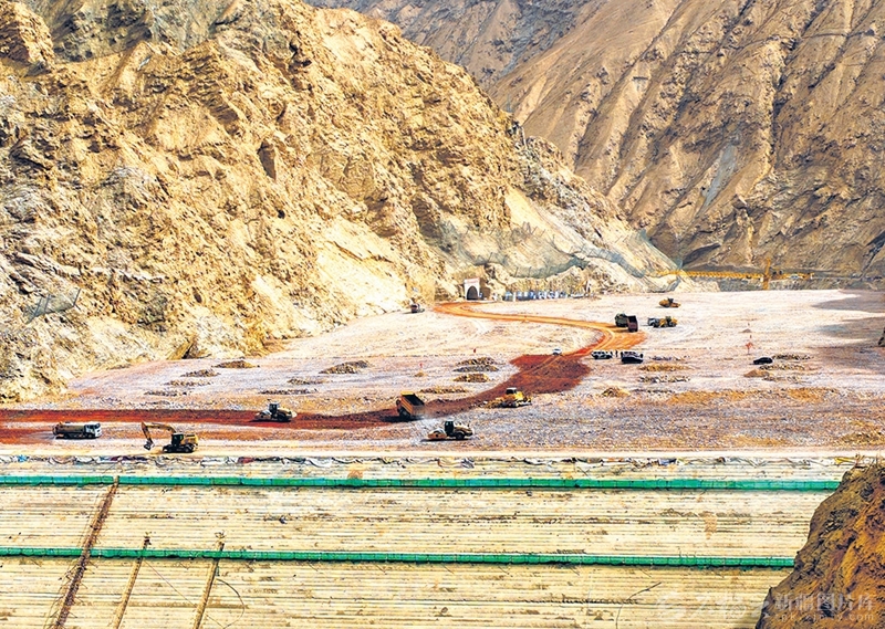 2月25日,玉龙喀什水利枢纽工程施工现场,施工车辆往来穿梭,一派热火朝天的忙碌景象。目前,该项目建设已完成70%。 □许晓龙摄