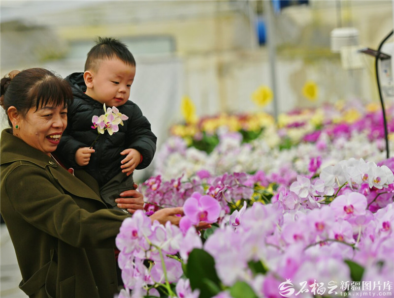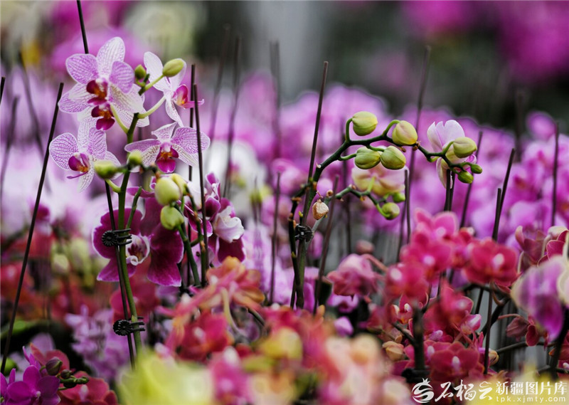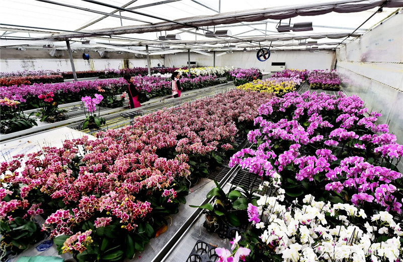 2月25日,员工在新疆万润丰花卉基地智能温室内搬运蝴蝶兰。天山网-新疆日报记者王立华摄