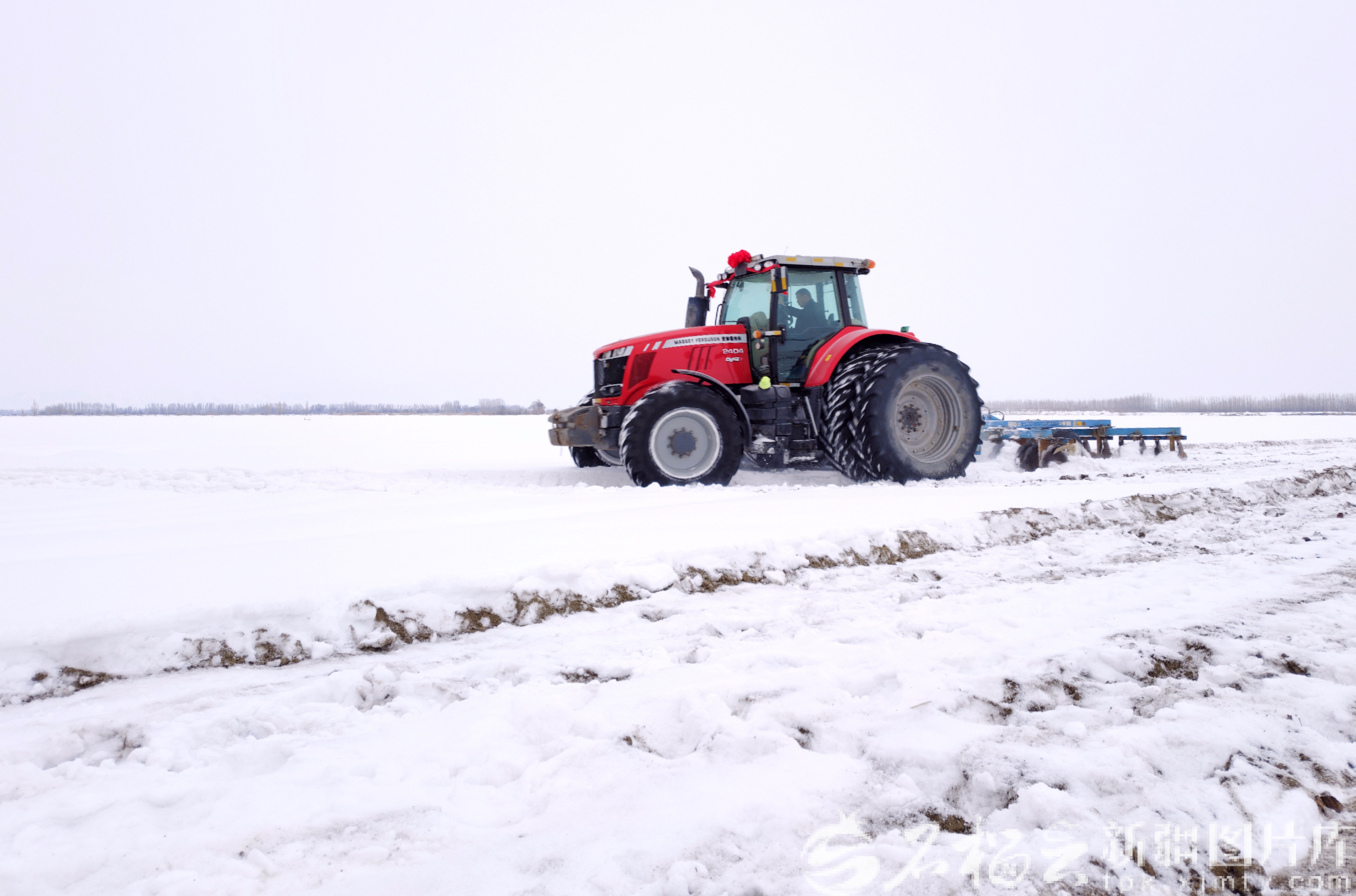 2月26日,一辆机车在新疆生产建设兵团第八师的农田里破雪作业。该团组织40余台机械抢抓时机破雪,为后续整地、播种抢出关键时间。石海摄