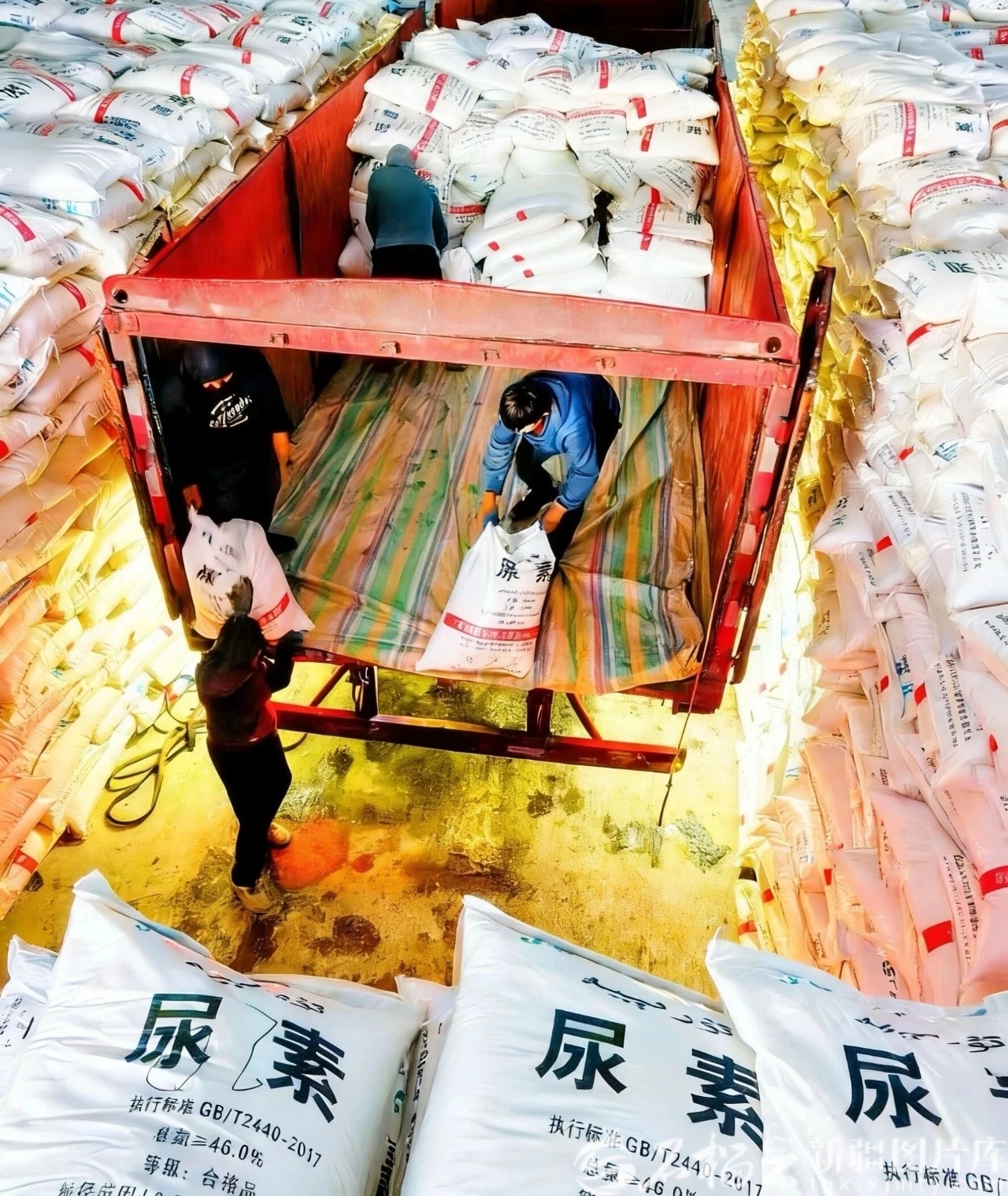 2月26日,新疆生产建设兵团第九师167团国有资产投资经营有限公司员工在装卸农用化肥,做好农资储备供应工作,助力春播生产。熊辉娥摄
