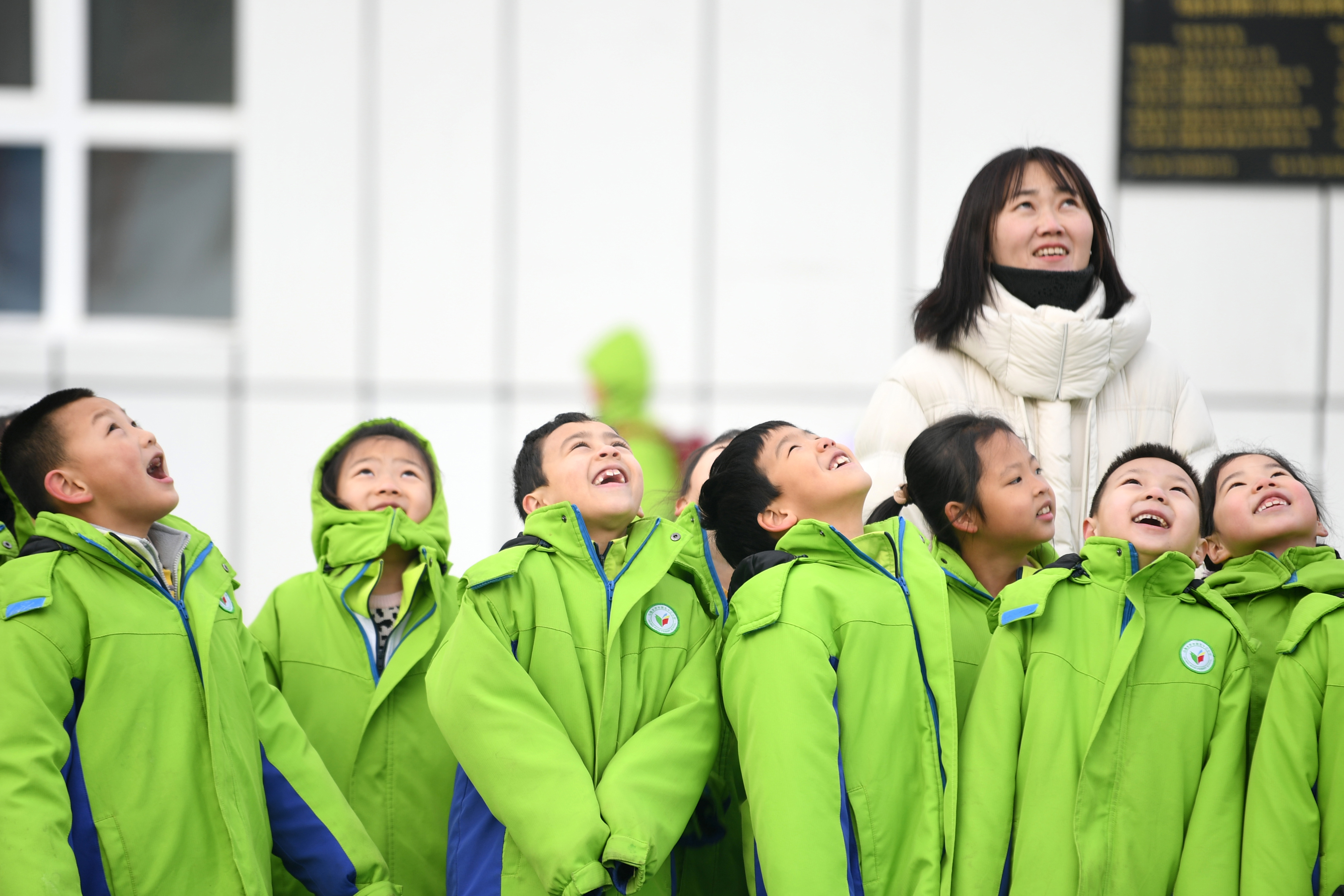 3月2日,乌鲁木齐市第53小学举行了2025—2026学年第二学期开学典礼。这场典礼把科技和传统巧妙融合,为新学期拉开精彩序幕。图为学生们在观看航模表演。记者 秦梅花摄