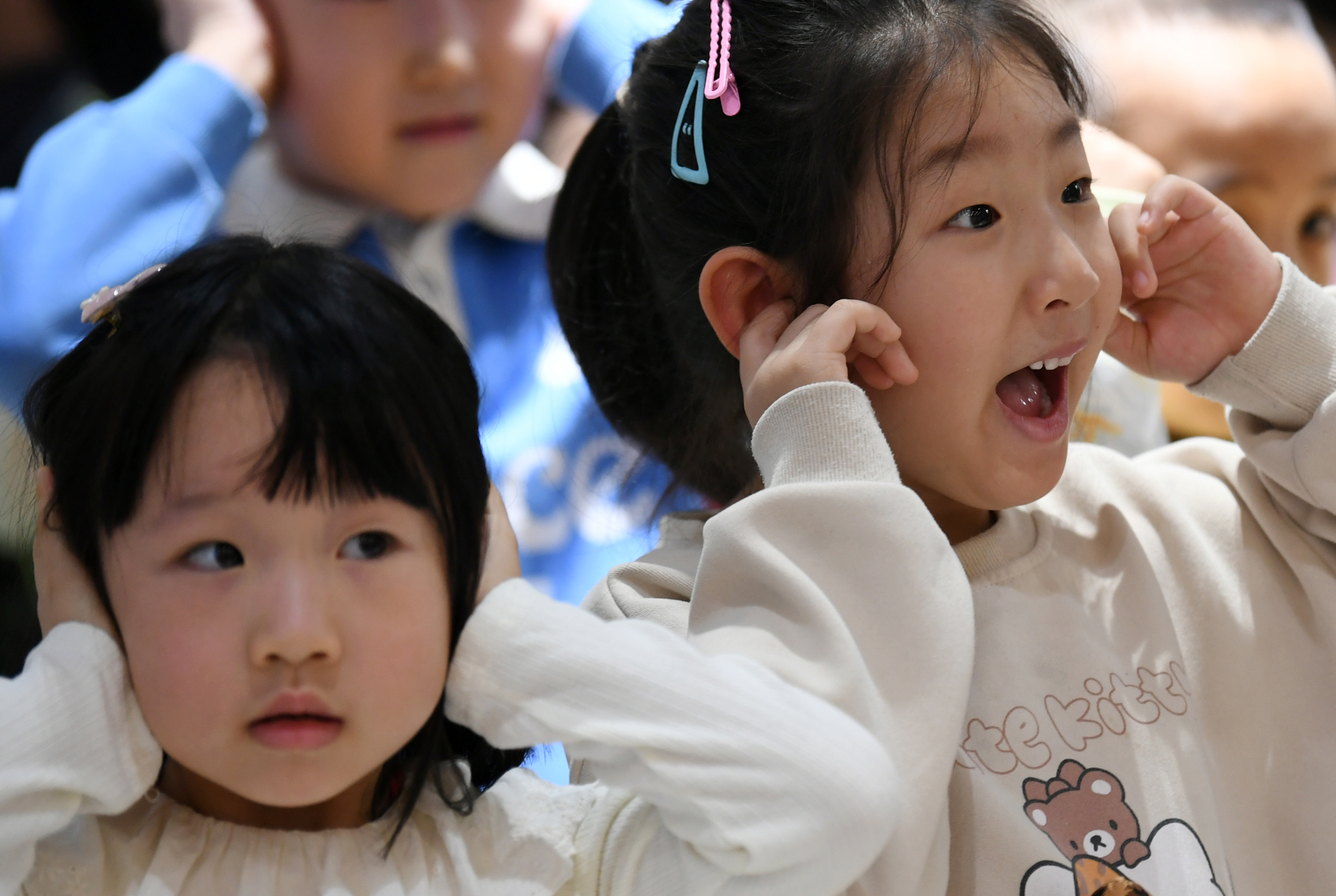 3月3日,小朋友参与爱耳护耳小游戏。当日,是第27个全国爱耳日,乌鲁木齐市水磨沟区卫生健康委员会在新疆中泰教育科技有限公司第三幼儿园,精心举办爱耳护耳健康科普活动,为孩子们送上一堂生动有趣的听力健康启蒙课。记者 秦梅花摄