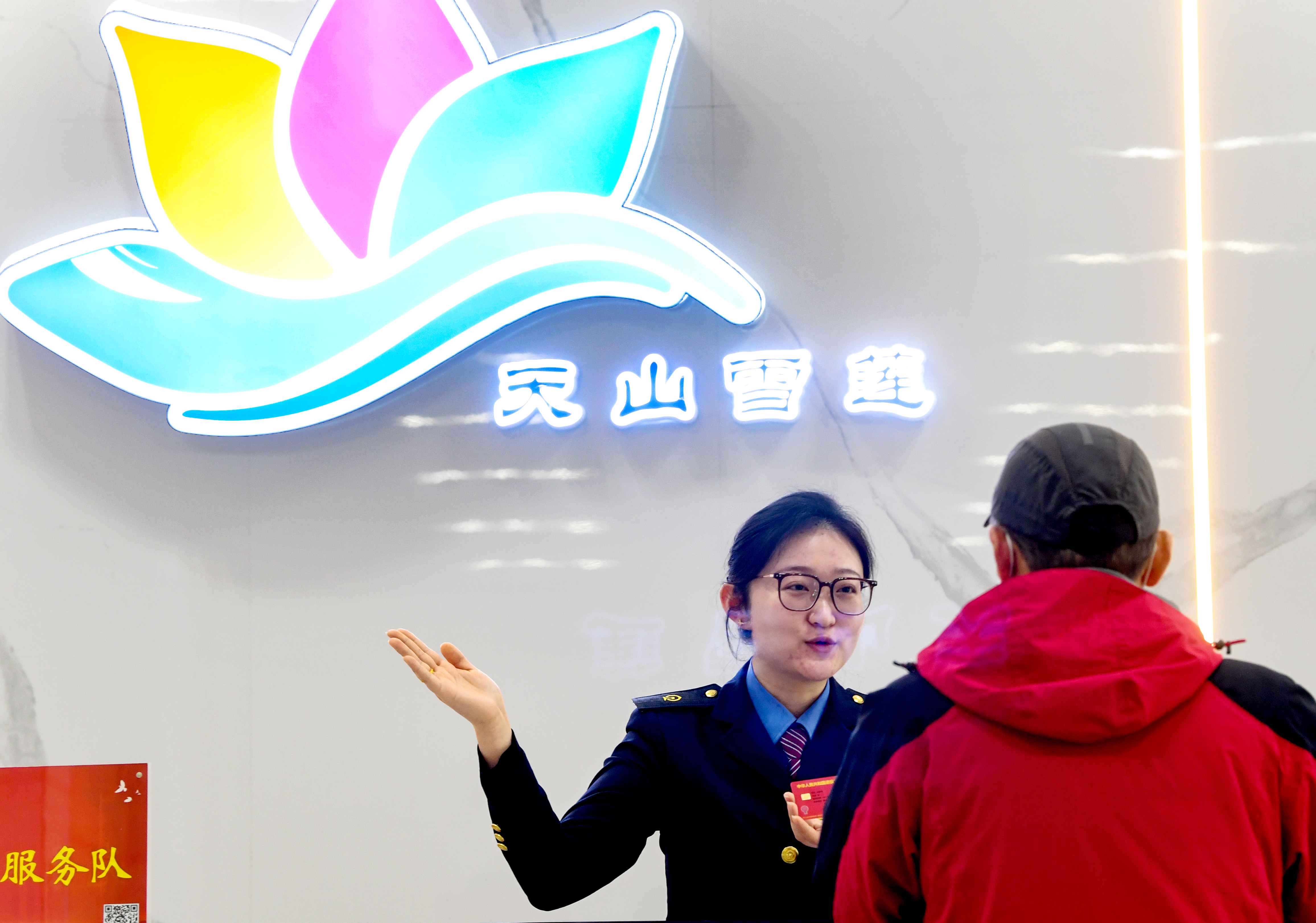 3月5日,客运员柴元元在解答旅客疑问。第63个学雷锋纪念日到来之际,中国铁路乌鲁木齐局集团有限公司乌鲁木齐站客运车间“天山雪莲”服务队被中宣部命名为第十一批全国岗位学雷锋标兵集体,成为新疆铁路窗口践行雷锋精神、服务各族旅客的生动实践与典范。记者 韩亮摄