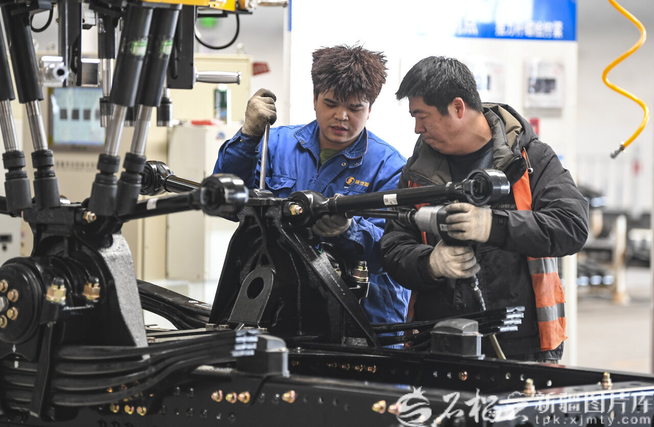 天山网-新疆日报讯(记者汤永摄影报道)3月16日,陕汽新疆汽车有限公司生产车间内一派热火朝天的景象:流水线旁,工人们专注地进行装配、检测,叉车往来穿梭运送零部件,机械运转的声响此起彼伏。今年以来,公司订单量已达823辆,其中出口车513辆,海外市场需求旺盛,出口同比增长362%。当前正在赶制的66辆车中,50辆将启程发往哈萨克斯坦。“从零部件采购到生产组装,全程严把质量关,让‘中国新疆制造’扬帆出海、站稳海外市场。”公司运营中心主任杨小龙指着即将下线的车辆介绍道。随着这批出口车辆陆续下线,企业迎来出口“开门红”,既为全年生产开好局、起好步,也彰显了本地汽车制造业在国际市场上的竞争力与发展潜力。