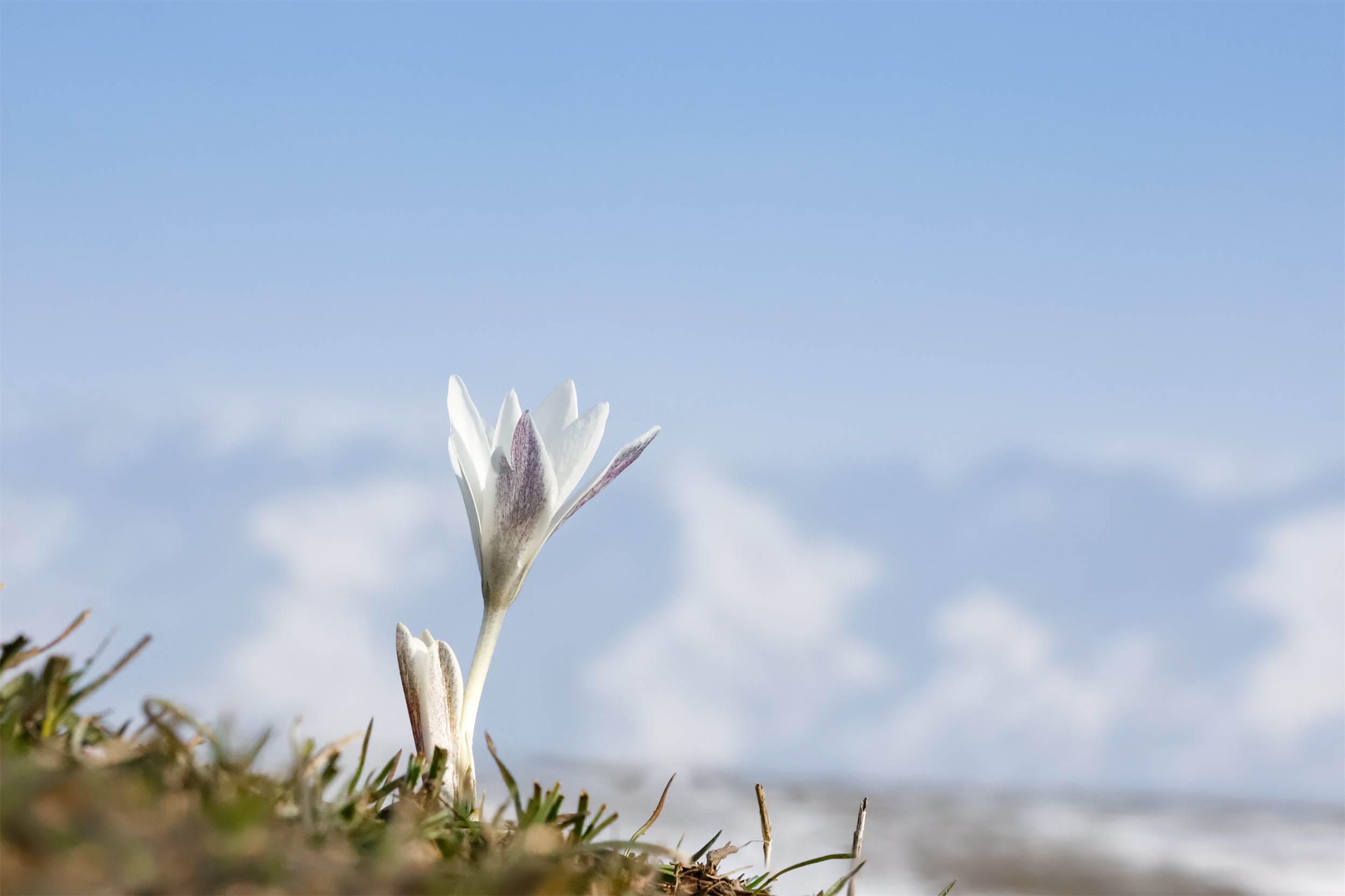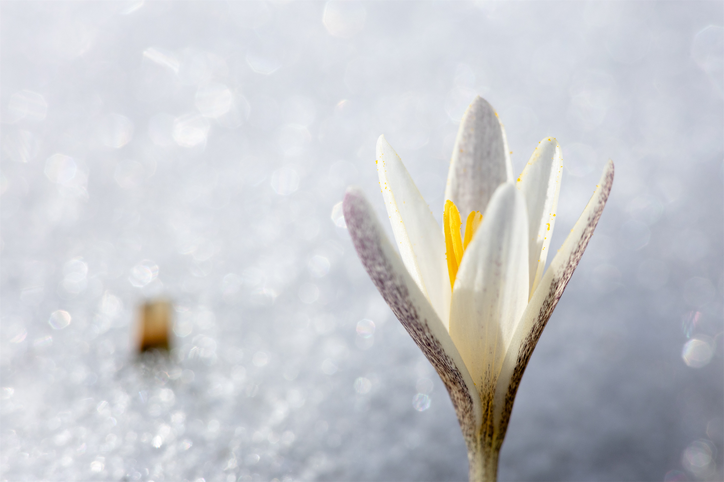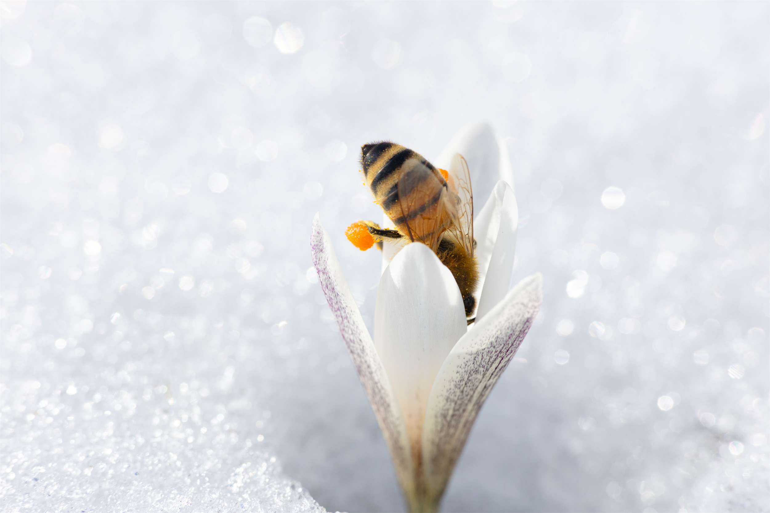 初春时节,气温仍在零下,白番红花冲破冻土与残雪,悄然铺满山野。植株娇小玲珑,乳白色花瓣簇拥金黄花蕊,在寒风中亭亭玉立,与皑皑雪峰、苍茫山野相映成趣,绘就冰与花共生的生态画卷。而随着花开,蜜蜂们也忙碌了起来。