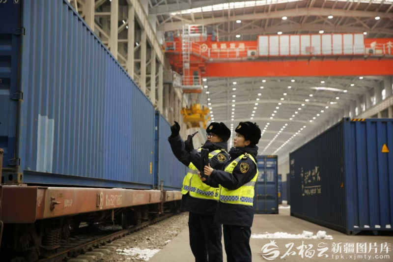 1月7日,乌鲁木齐海关所属阿拉山口海关关员对中欧班列开展监管作业。叶尔扎特·阿尼克塔西摄