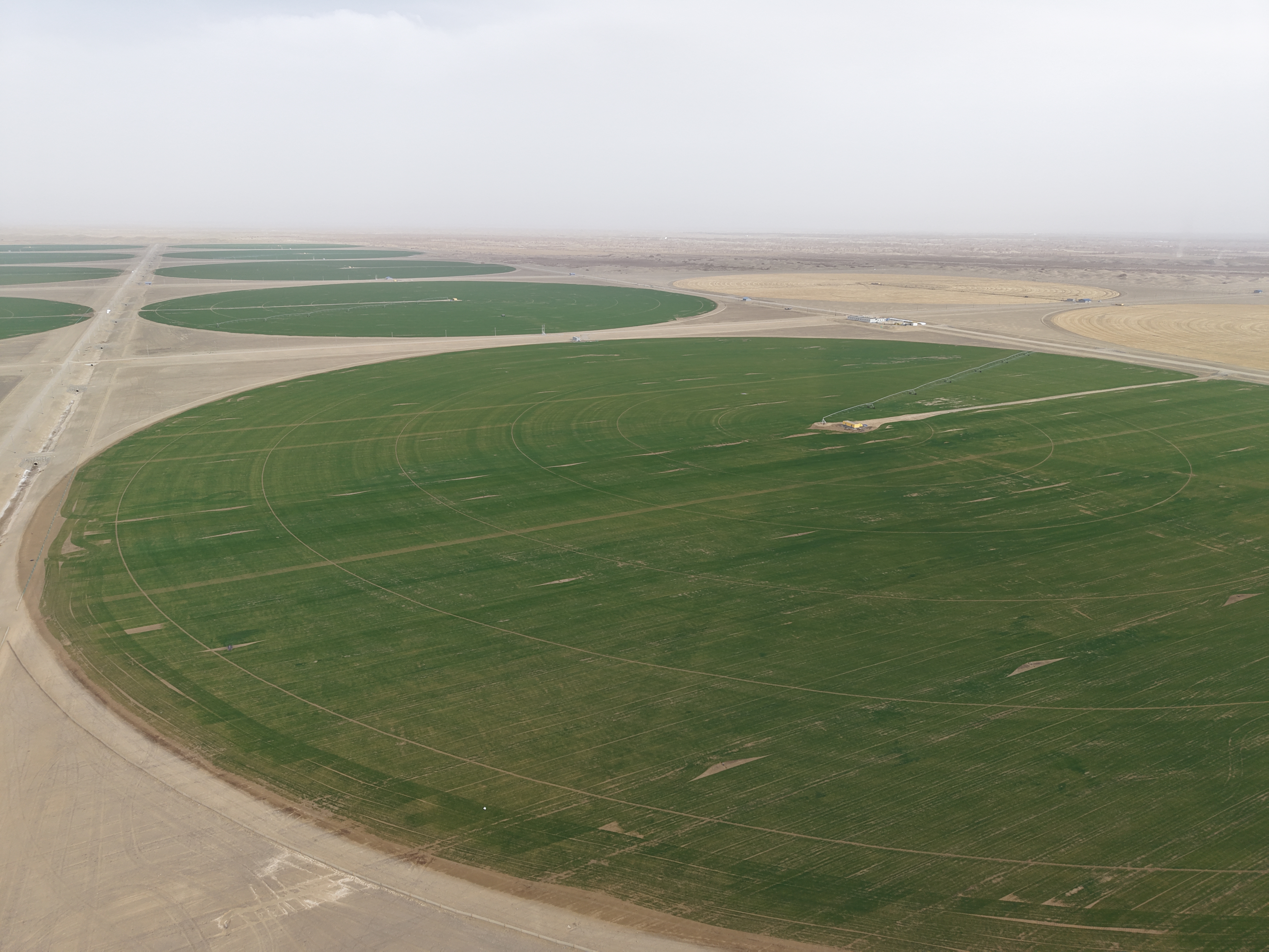 解读:对比2025年3月和2026年3月的两张卫星影像,清晰显示了一个个与沙漠形成鲜明对比的绿色“同心圆”如从天降,直观呈现“沙漠变良田”的治理奇迹。