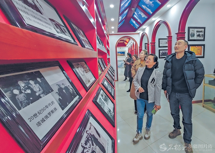这座红色驿站由阿地拉的父亲阿地里·阿不都热合曼一手创办。阿地里是巴克图口岸退休干部,被称作巴克图口岸的“活字典”。40余载深耕边贸与党史研究,他收藏科普剪报14万张、图书2万册,整理出数百件与口岸相关的老物件和历史照片。前些年,老人腿脚不便,无法再像以前一样为游客和市民讲解口岸历史,便手把手教女儿讲解。