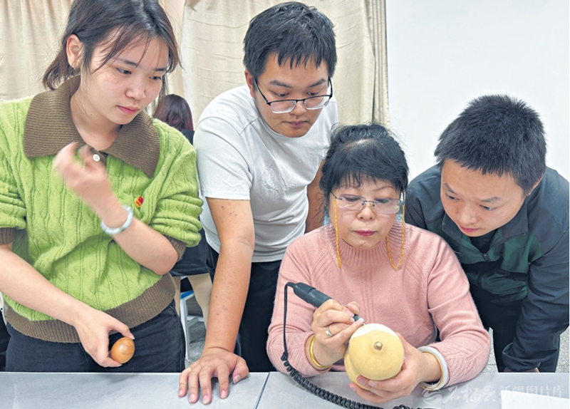 2025年12月3日,马江红在新疆财经大学葫芦雕刻非遗艺术班授课。