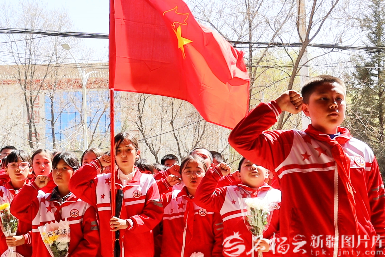 4月2日,乌什县团委组织“追寻·2026·清明祭英烈”活动,少先队员重温入队誓词。乌什县团委供图