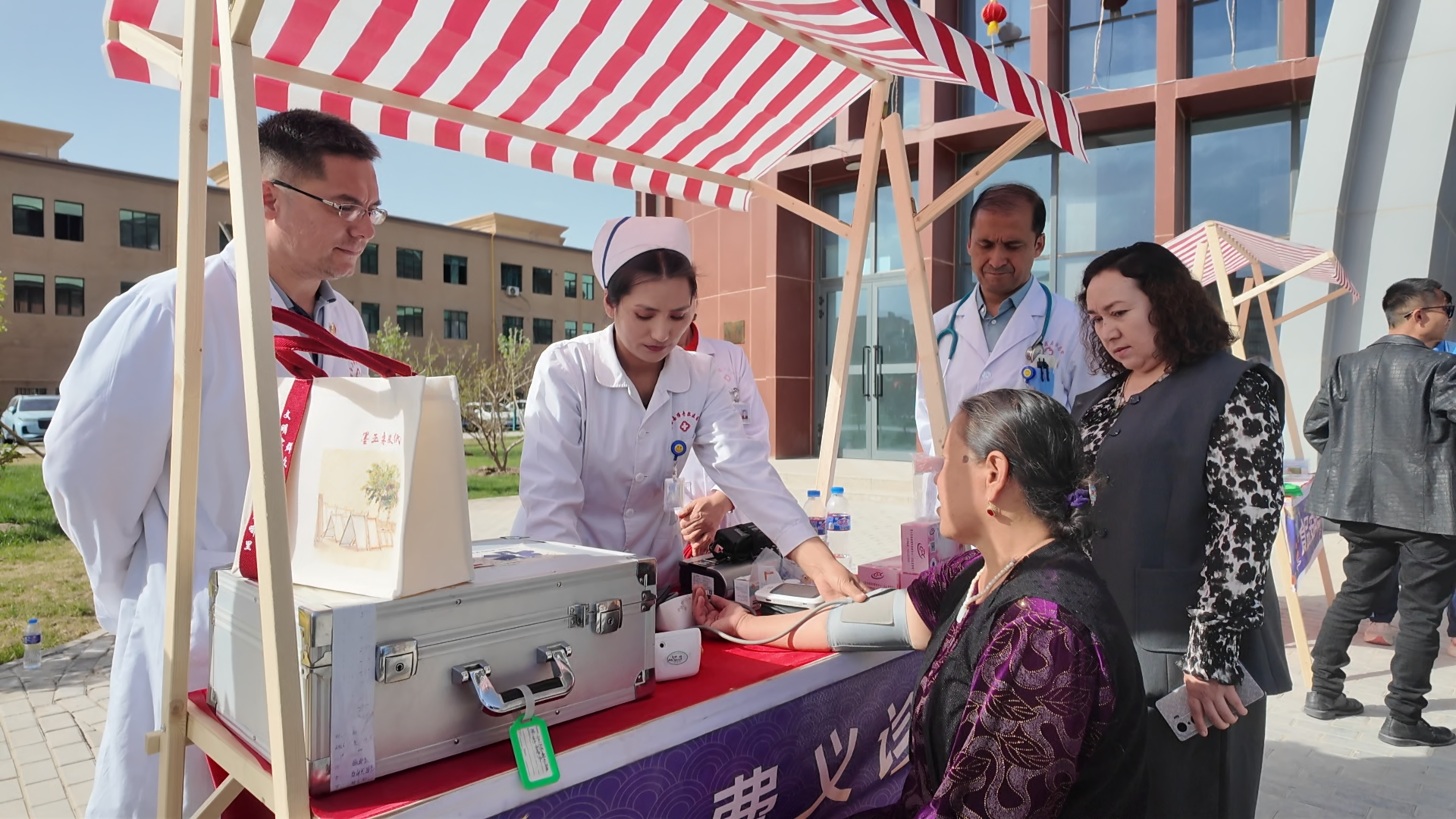 同步开展的文明集市同样热闹,新疆“四史”主题流动巡展前,群众驻足细看,了解新疆历史文化脉络;义诊服务台前,医护人员为群众测量血压、解答健康疑问;文明新风微宣讲讲解引领文明时尚,引导大家践行科学文明生活方式。
