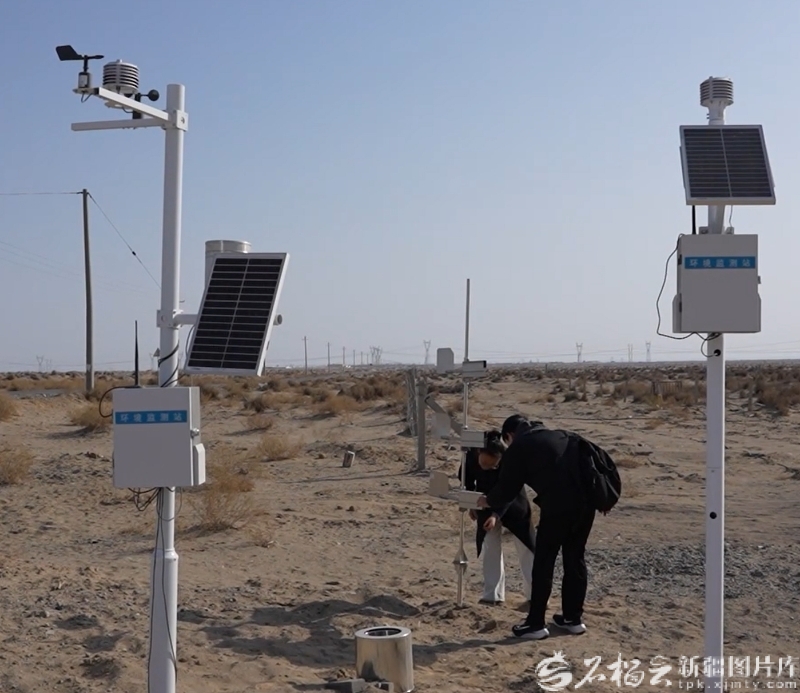3月5日,哈密荒漠戈壁站工作人员正在调试监测设备。朱意摄