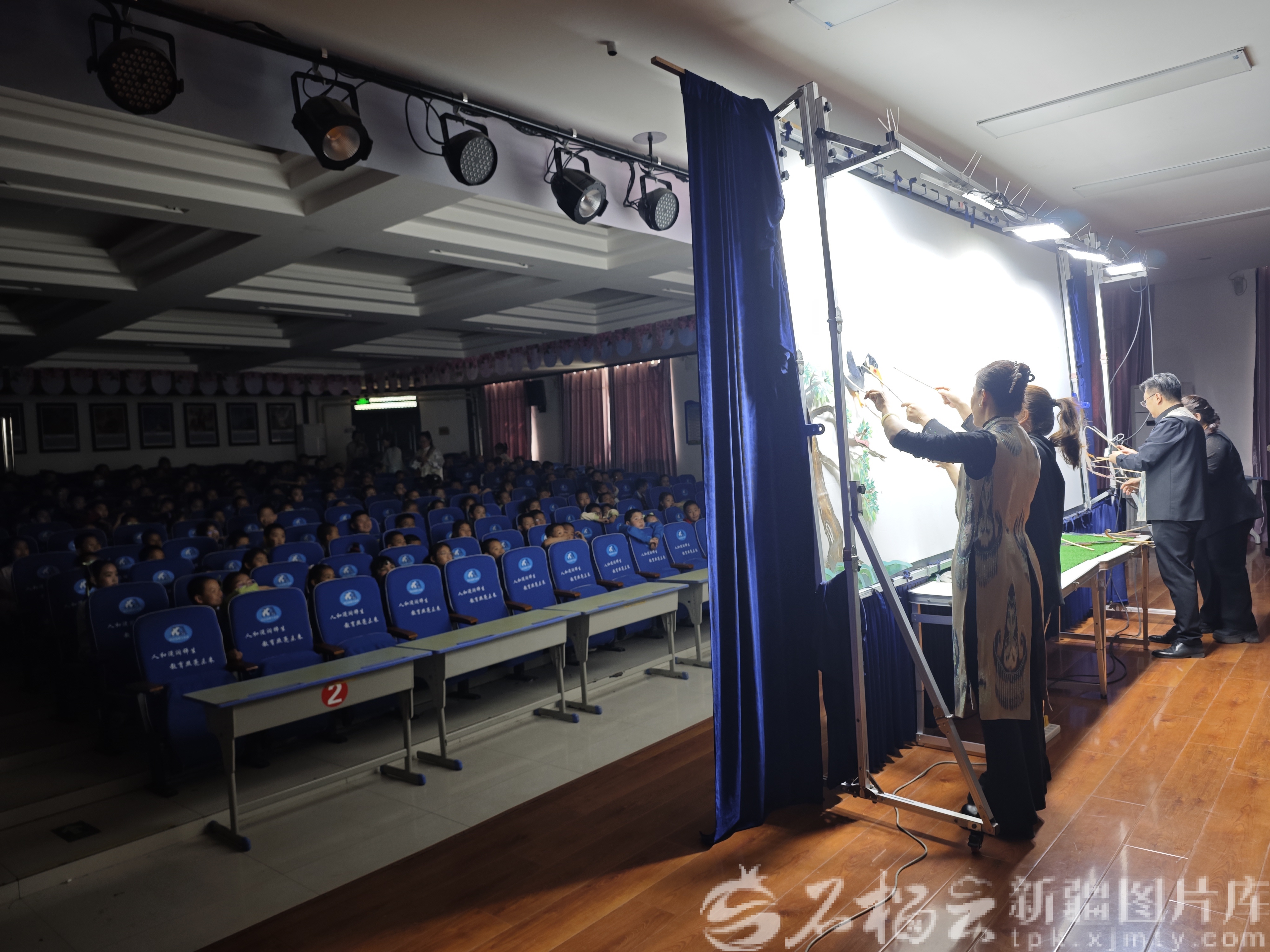 4月10日,昌吉市文化馆皮影艺术团在昌吉市第十小学阶梯教室表演皮影。天山网-新疆日报记者 朱成晓 摄