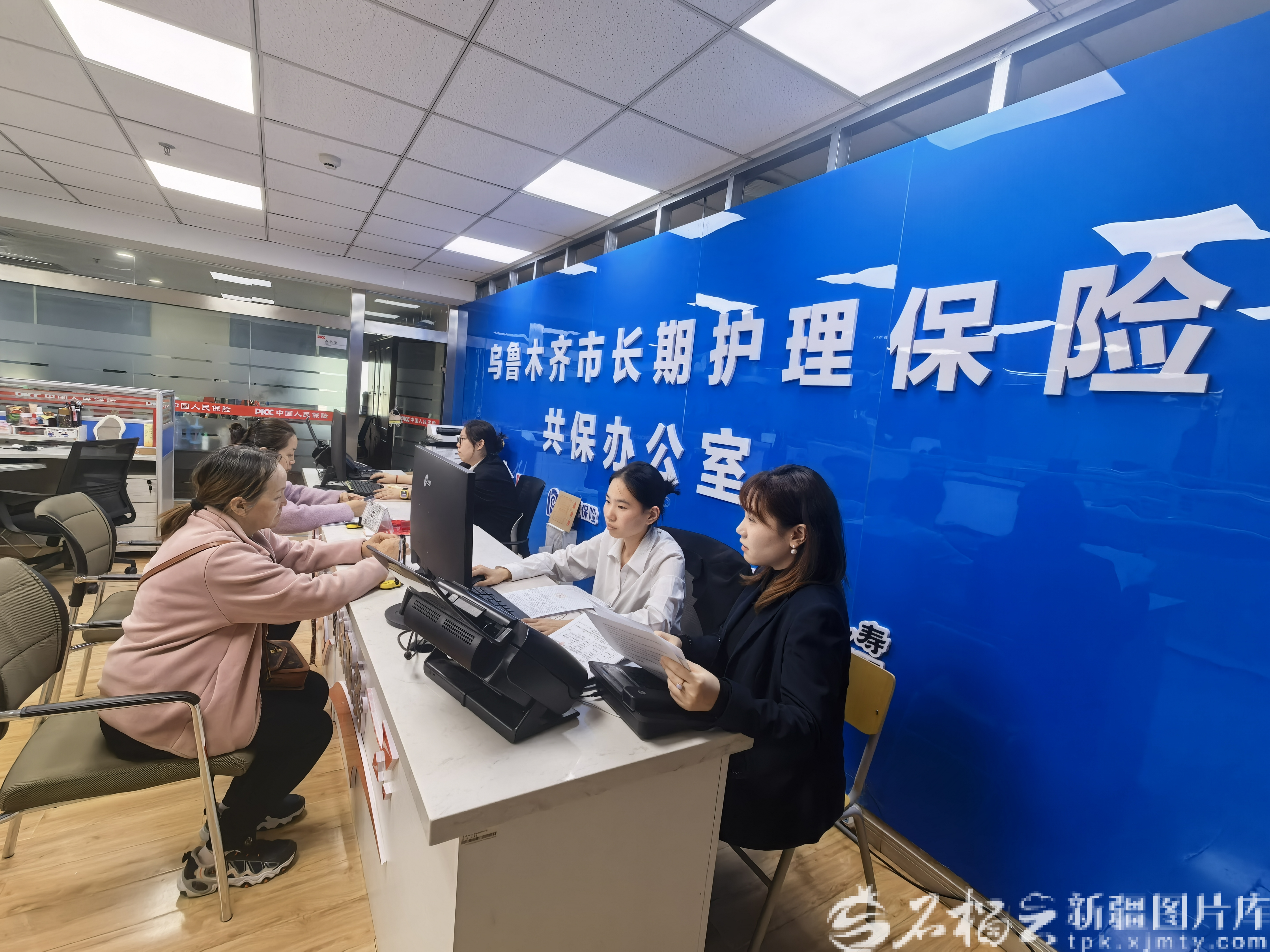 2025年11月3日,在乌鲁木齐市长期护理保险共保办公室,失能人员家属来办理长护险申请手续。资料图片