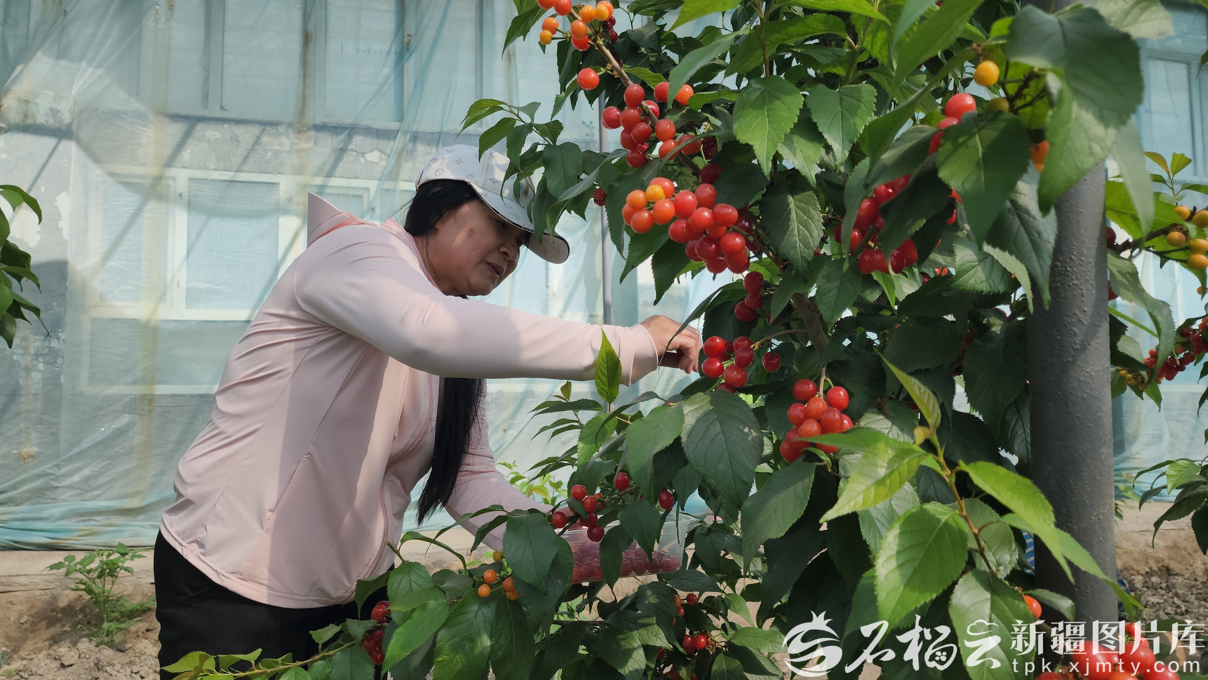 4月初,在库尔勒市阿瓦提乡英康生态园的温室大棚里,颗颗樱桃红似玛瑙,游客穿梭果林,沉浸式体验采摘乐趣。该生态园建有5座樱桃大棚,预计年产樱桃约2吨,年营收达15万元,为乡村全面振兴装上“甜蜜引擎”。