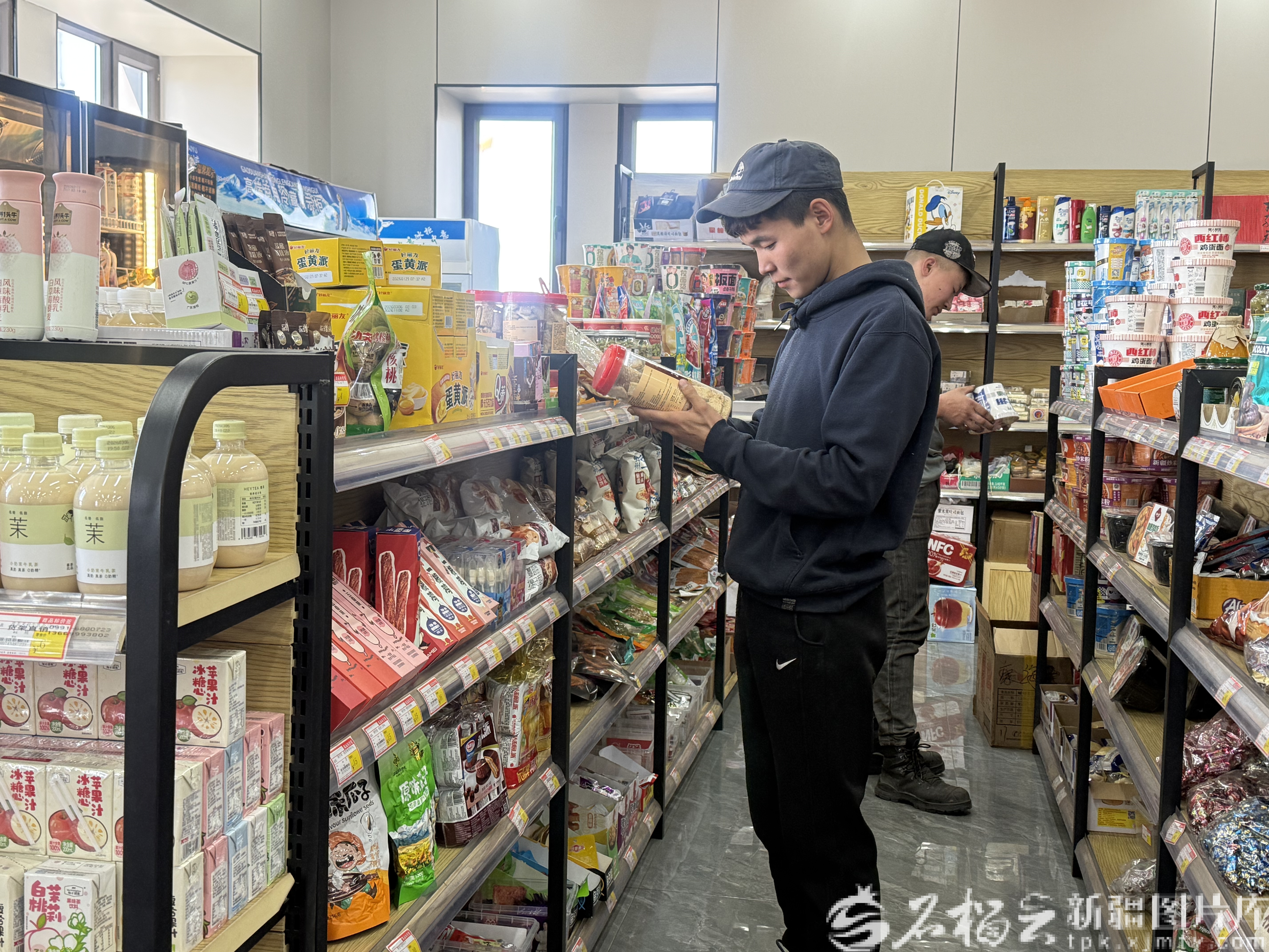 4月22日,塔克什肯口岸国际“司机之家”,蒙古国司机巴·恩克塞汗在挑选自己喜欢的商品。石榴云/新疆日报记者 郭倩摄