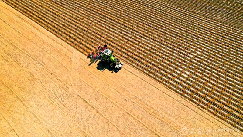4月23日,在福海县解特阿热勒镇的田间地头,一派忙碌景象,播种机来回穿梭,忙着进行玉米播种作业。随着气温逐渐回升,福海县63.6万亩玉米播种工作全面启动。 阿尔达克·拜斯汗摄