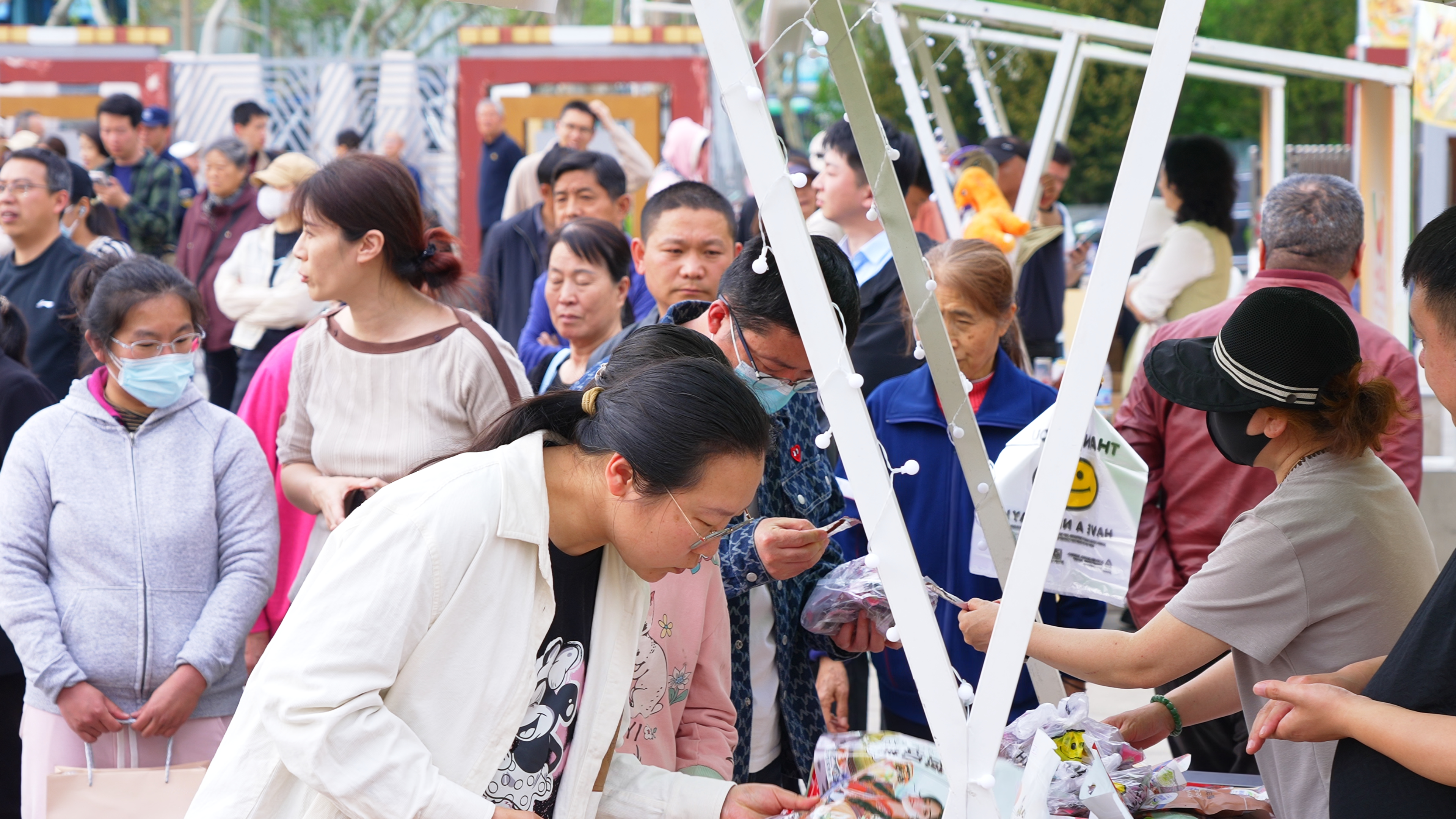 “哈密有礼·甜蜜市集”上,四十余款产品一字排开:哈密瓜主题的餐具精巧别致,蜜宝IP的萌趣周边惹人喜爱,非遗刺绣的花帽与文创琳琅满目。在济南站展台,非遗刺绣产品前围满了好奇的游客,人们细细端详着绣品上细密的针脚与繁复的花纹,不时向工作人员询问技法与背后的文化故事。“以前只在电视上见过新疆刺绣,今天看到才知道针线里藏着那么多功夫。”游客赵铭勋感叹。