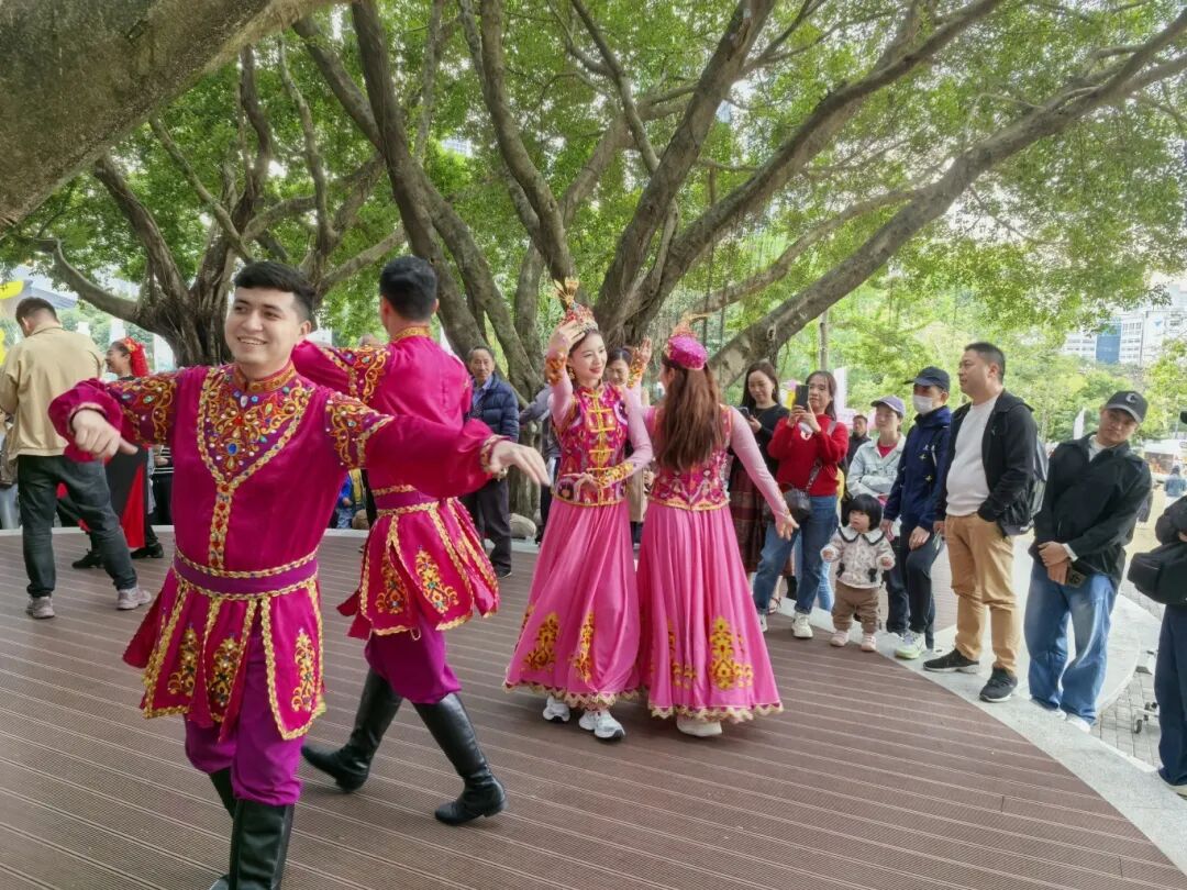 来自黑龙江的游客张卓举着手机全程录制,激动地说:“本来是冲深圳簕杜鹃来的,没想到被阿克苏文旅狠狠圈粉。舞者的热情、音乐的独特魅力,让我对那片土地充满好奇,回家就做攻略,一定要去阿克苏旅游。”