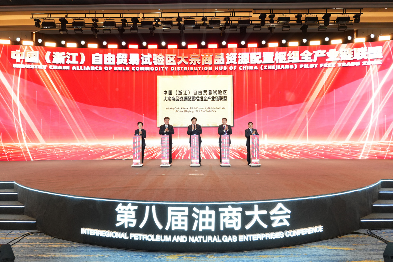 当前,舟山正全力建设大宗商品资源配置枢纽。会上,由百家大宗商品领军企业、行业协会及研究机构组成的中国(浙江)自由贸易试验区大宗商品资源配置枢纽全产业链联盟揭牌成立。大会还同步举行了中国绿色修船国际认证创新联盟成立仪式、浙江海洋大学国际大宗商品学院揭牌仪式,并发布了《绿色船燃发展舟山宣言(2025)》。