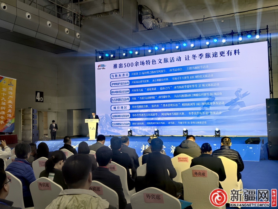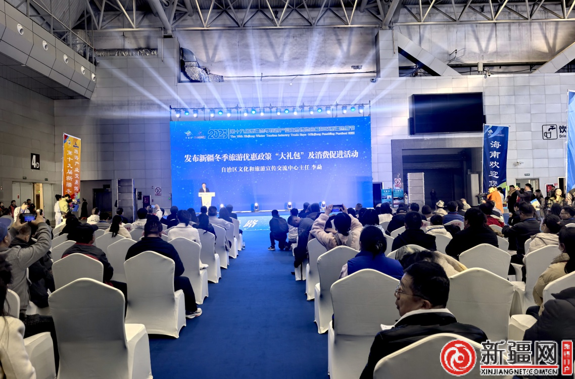第十九届新疆冬季旅游产业交易博览会暨2025新疆热雪节启动仪式上,发布新疆冬季旅游优惠政策“大礼包”及消费促进活动。(薛玲摄)