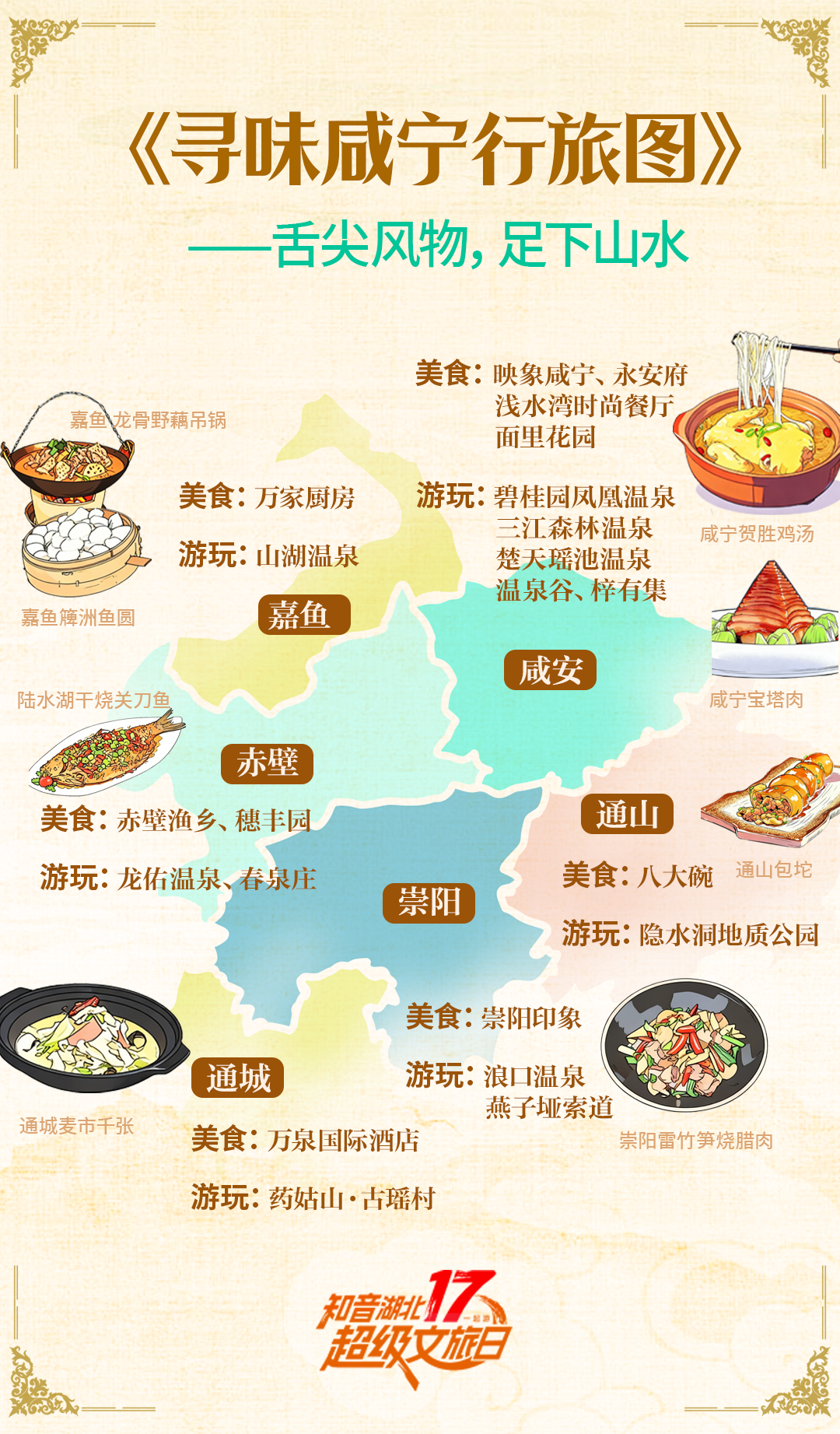 超级文旅日,17寻味咸宁!愿你把“到此一尝”的满足,“到此一泡”的惬意,“到此一游”的欢喜,都留在咸宁!而带走的,是可以永久回味的暖心记忆!