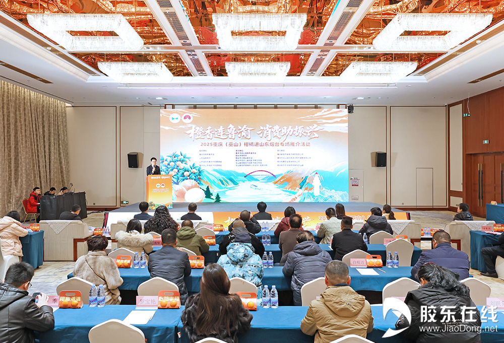 胶东在线12月25日讯(记者 邬勇 摄影 李刚)橙香连鲁渝,消费助振兴。12月25日,2025年重庆(巫山)柑橘进山东烟台专场推介活动在烟台市莱山区凤凰大厦建国饭店举行。一枚枚果肉细腻、汁多酸甜、色泽饱满的“巫山恋橙”,承载着源自千里之外的甜蜜“恋”意,见证“山海协作”结出的丰硕果实。