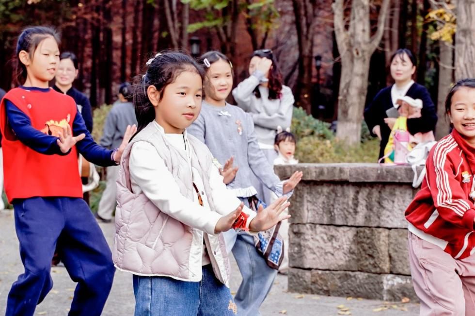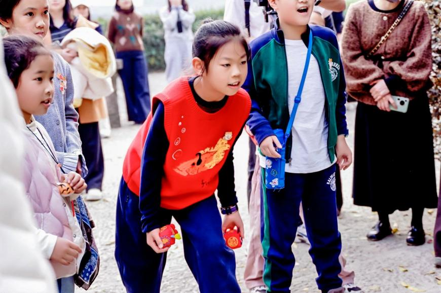 “今天我们紧扣老虎主题,特意为大家准备了‘老虎进洞’和‘武松打虎’两个趣味游戏!”话音刚落,孩子们欢呼着组队竞技,在红杉林里奋力比拼,尽情享受这堂无墙无界的自然课堂。