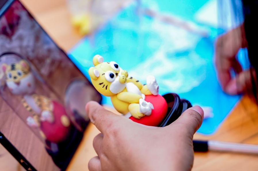 当孩子们举起自己的作品——歪着脑袋的“小老虎”、长着翅膀的“飞虎”,向老师笑着点评:“传统手艺要的就是这份童真。”