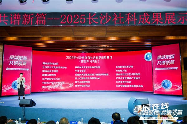 星辰在线1月19日讯(星辰全媒体记者 郭凤湘)恰逢长沙市社科联成立四十周年、“十四五”圆满收官与“十五五”扬帆启航的关键节点,1月19日,“星城聚智 共谱新篇”——2025长沙社科成果展示交流活动在长沙举行。省社科联党组书记、主持日常工作的副主席胡代松,市人大常委会党组成员、副主任王瑜珲,市政协党组成员、副主席陈昌佳等领导出席活动,市委组织部、市委宣传部、市委社会工作部、市委编办、市直机关工委、市委保密委员会办公室、市委党校、市财政局、市审计局等部门领导以及湖南湘江新区宣传工作部、区县(市)委宣传部负责人,市州社科联代表,市社科普及基地、市社科类社会组织负责人,社科专家及优秀代表等齐聚一堂,共话社科发展大计,共绘创新发展蓝图。活动由长沙市社会科学界联合会主办、星辰在线承办,星辰在线、星辰头条平台全程直播。