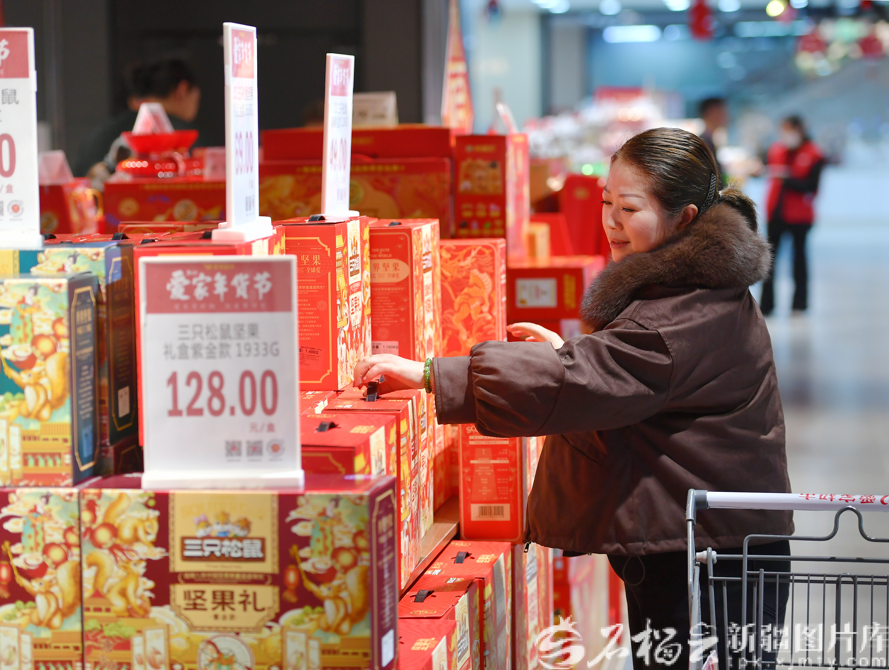 2月6日,市民在乌鲁木齐爱家超市长春路万达店选购新年礼盒。