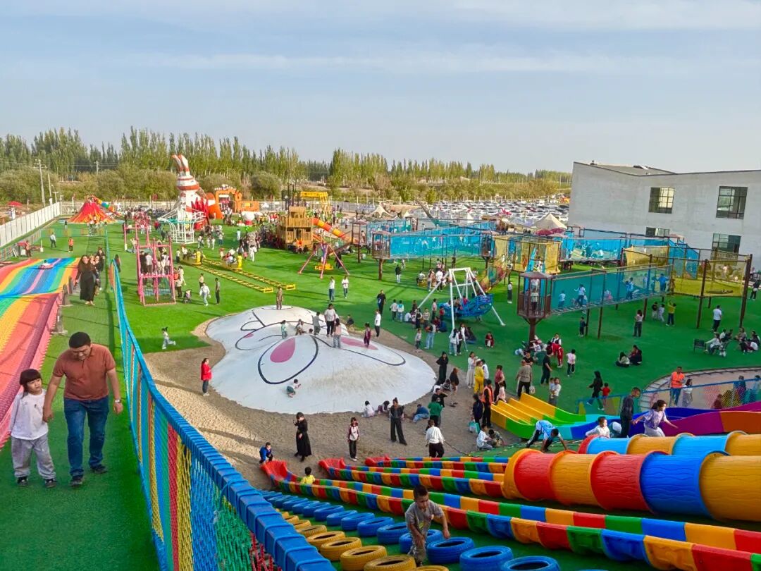 作为2024年浙江文旅援疆“双珠”计划的重要项目,兔小兔运动王国由宁波市援疆指挥部支持建设,是一座以“童趣运动+文化体验”为核心的综合性主题乐园。园区融合主题娱乐与身心教育,设有无动力设施区、拓展爬网区等主题区域,配备兔子滑梯、彩虹滑道等40余项趣味设施,旨在促进儿童体能发展与智力成长。
