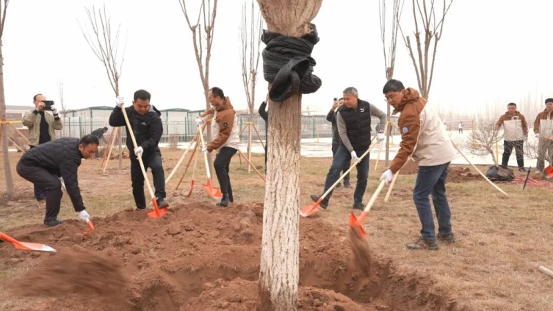 近日,广州援疆工作队联合喀什广建集团有限公司,在广州新城实验中学开展“十年树木 百年树人”植树活动。援疆干部以实际行动栽下“援疆林”,既为校园添绿,也寄托对边疆教育振兴的美好期许,成为同心帮扶、共育人才的生动写照。植树现场,大家三五成组、分工协作,挥锹铲土、扶苗培土、提桶浇水,每一锹土都压实,每一桶水都浇透,确保树苗扎根稳固、成活率高。