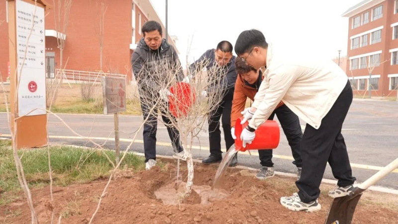 援疆干部给刚栽好的树苗浇水。新栽的79株树苗错落有致,既为校园增添盎然绿意,也将成为学子们课余纳凉休憩的好去处。